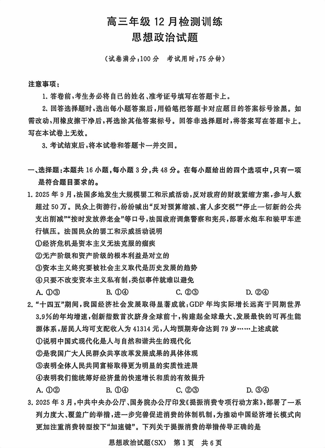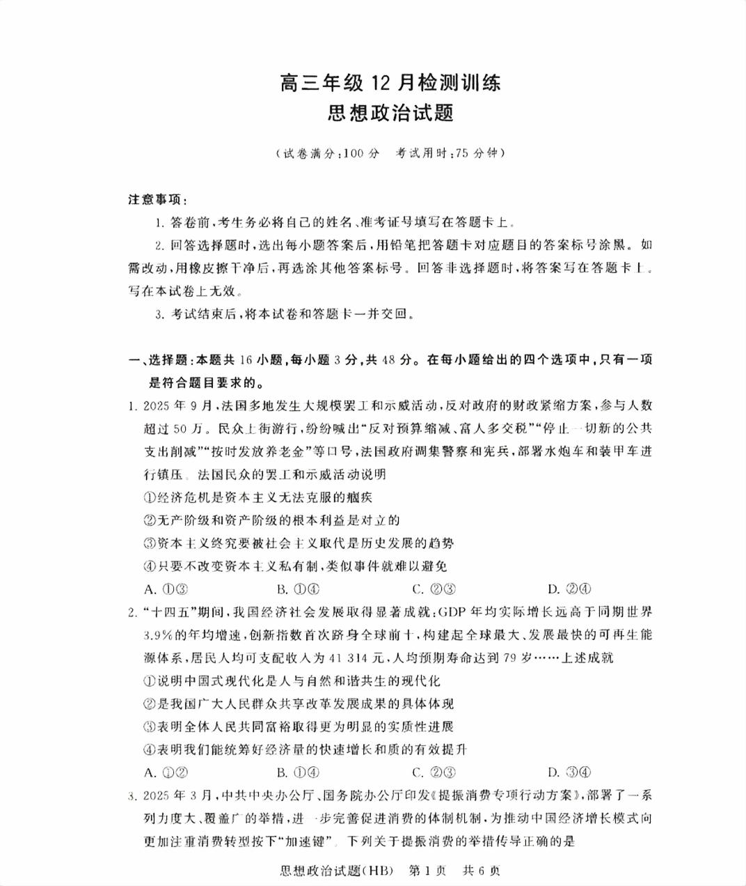 类型:联考 科目:政治 地市: 全省