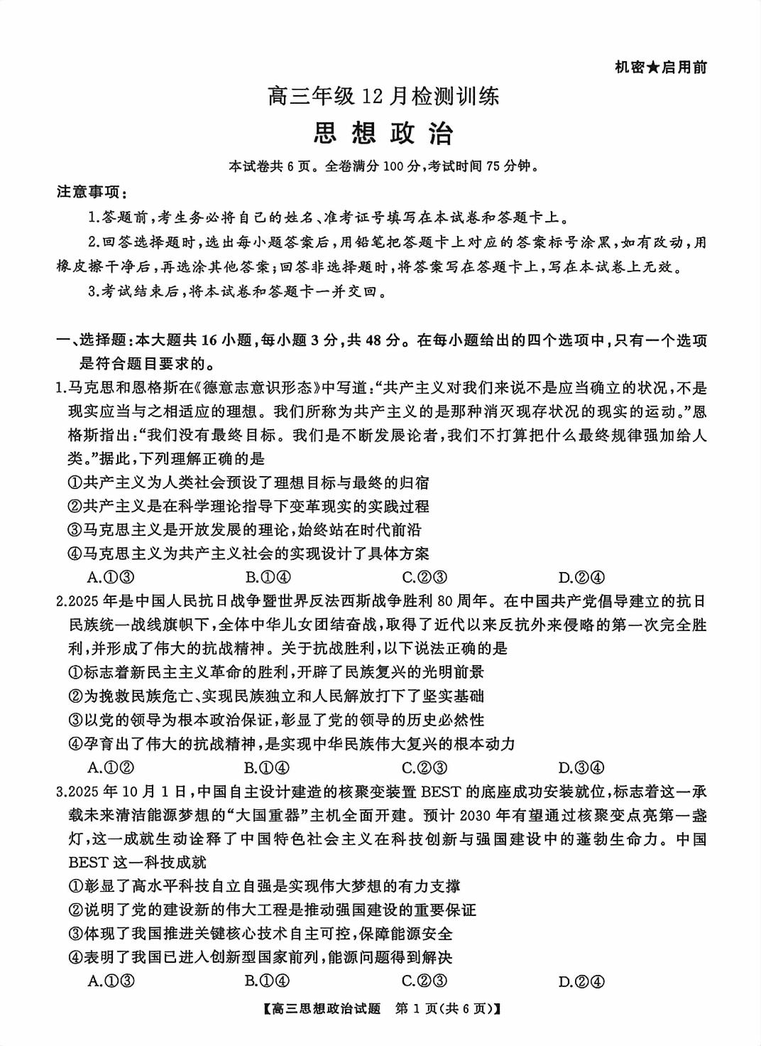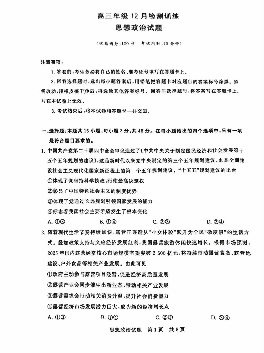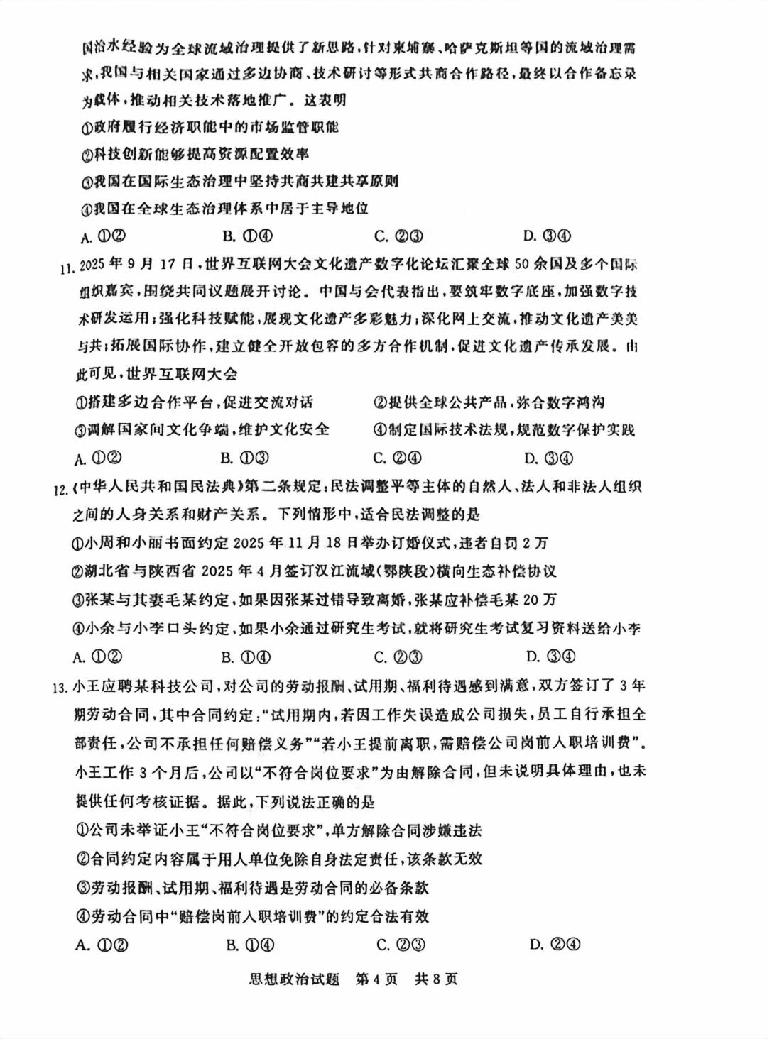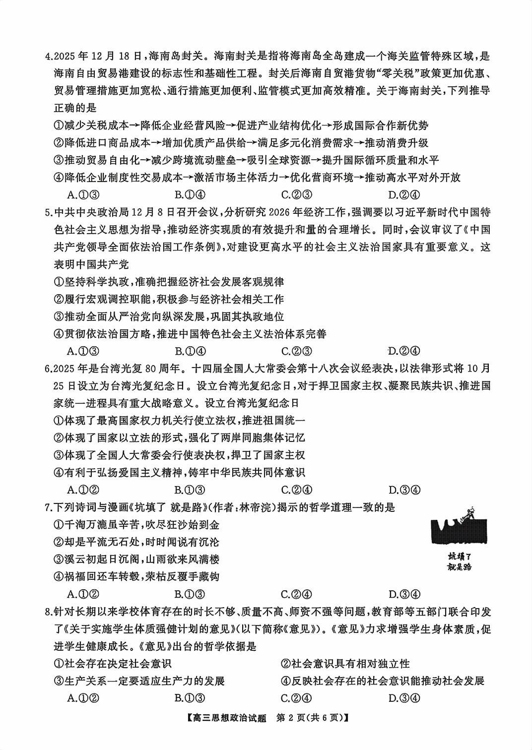 【已更新】福建2026届T8联考试卷及答案(政治)