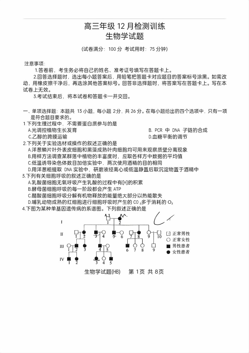 【已更新】福建2026届T8联考试卷及答案(生物)