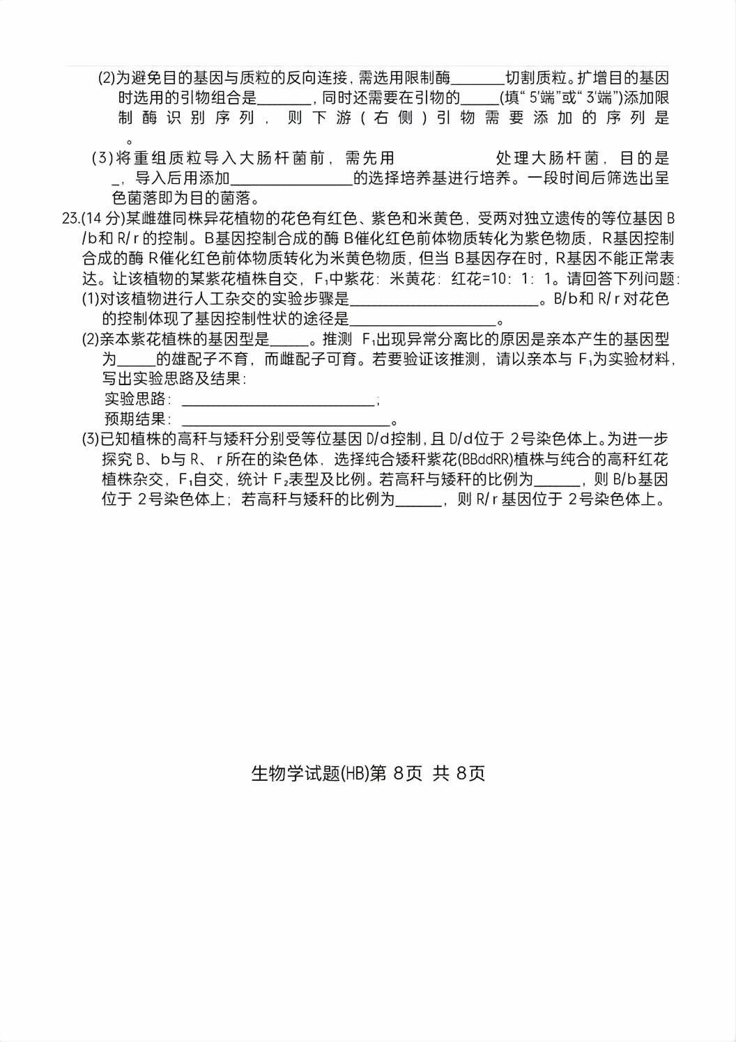 类型:联考 科目:生物 地市: 全省