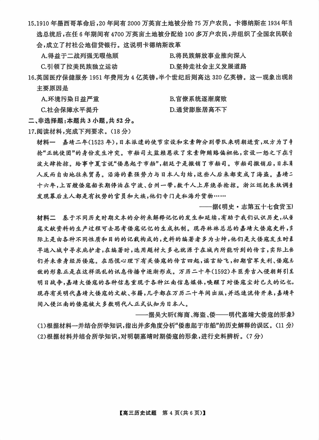 类型:联考 科目:历史 地市: 全省
