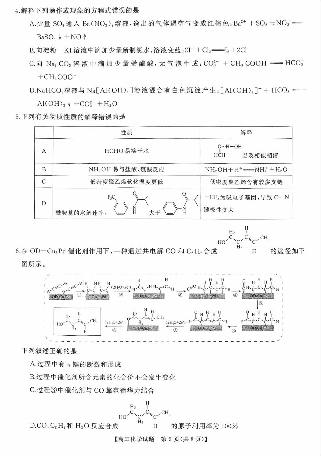 【已更新】福建2026届T8联考试卷及答案(化学)