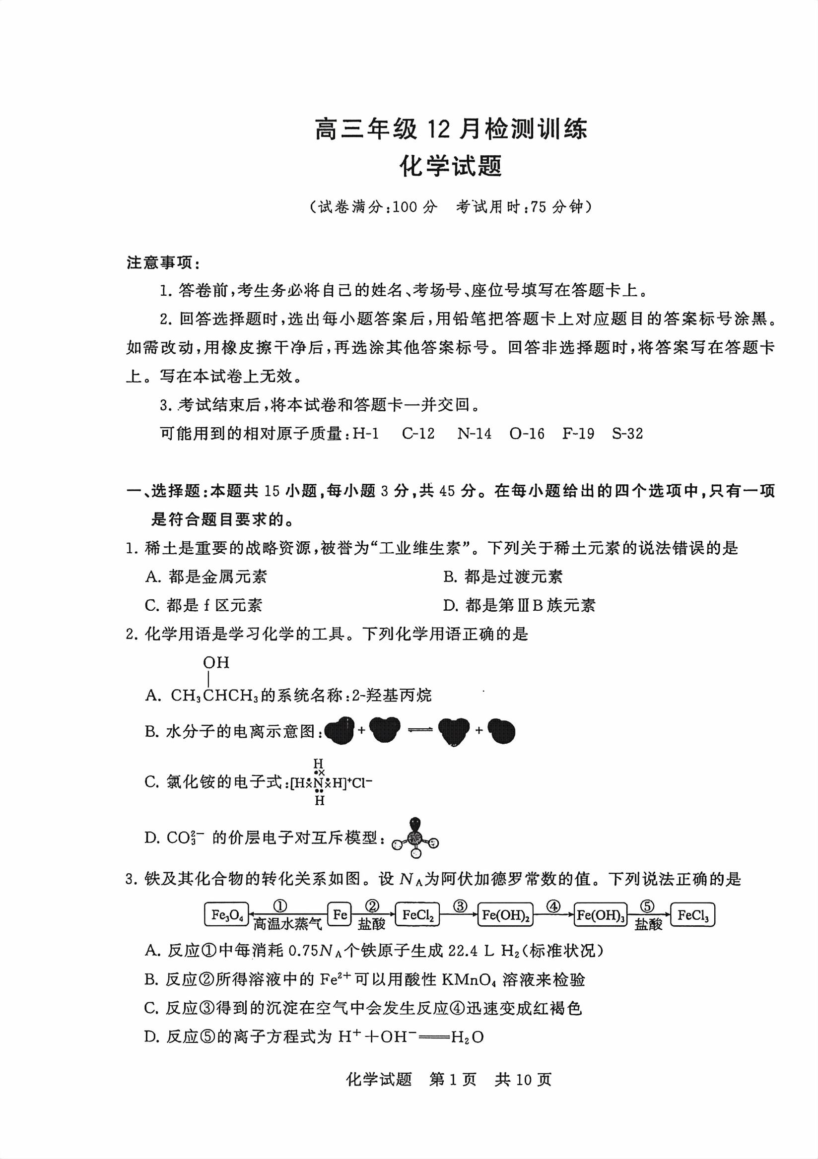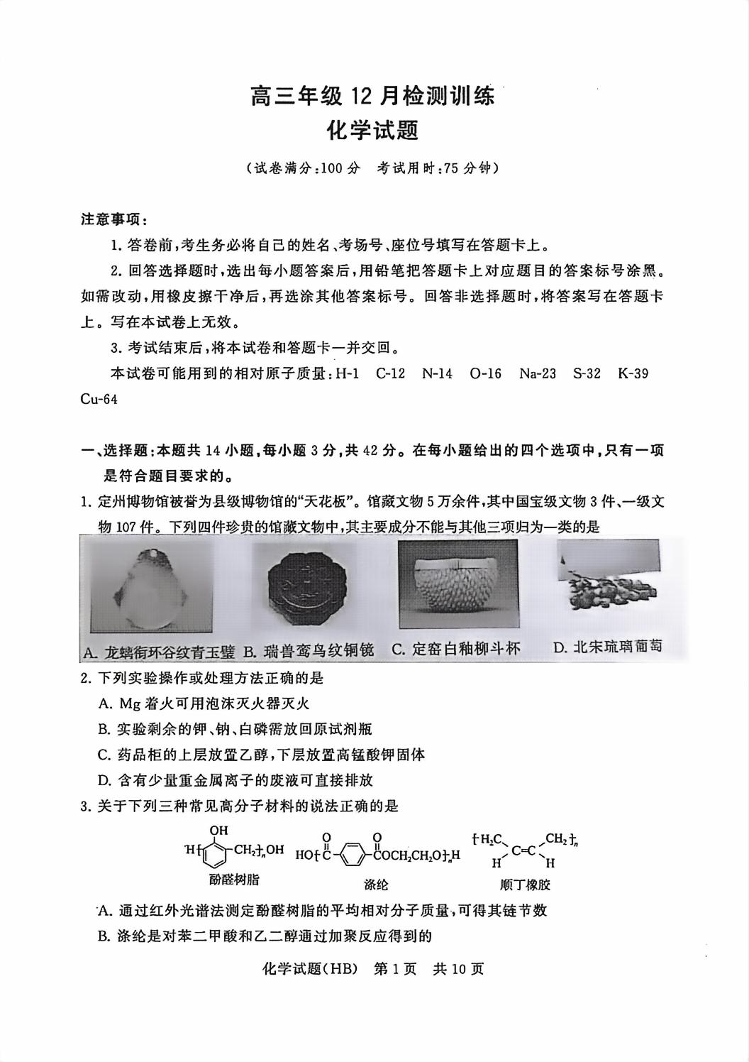 类型:联考 科目:化学 地市: 全省