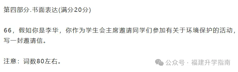 2026年福建1月学考英文作文题