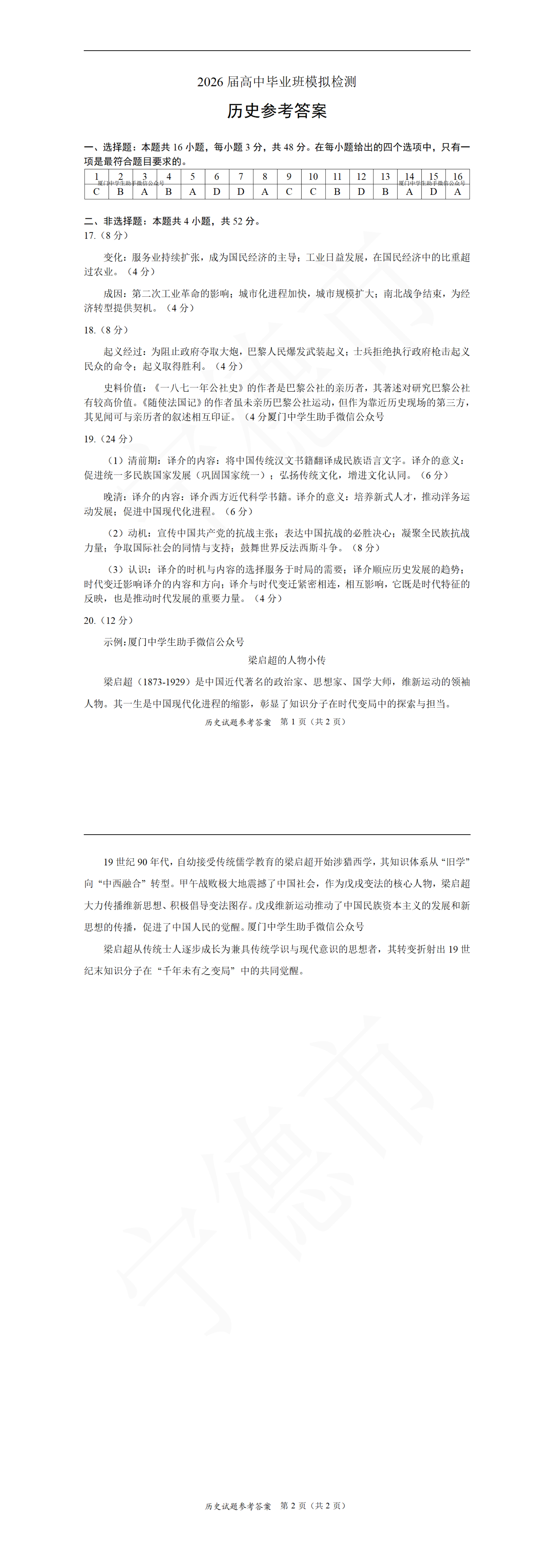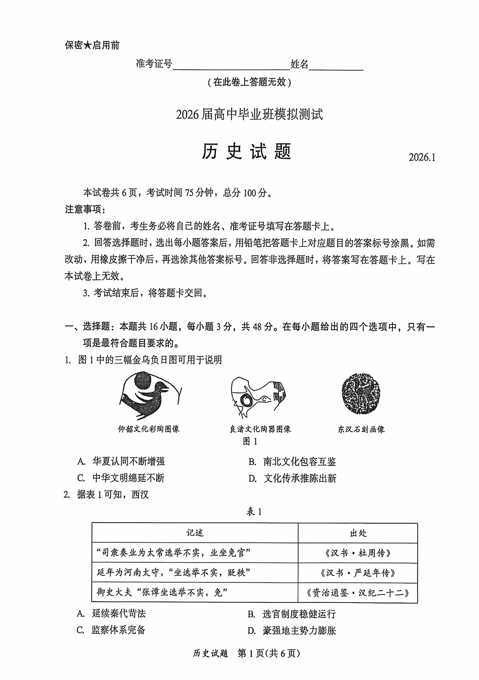 【已更新】2026福建高三1月六市联考试题及答案(历史)