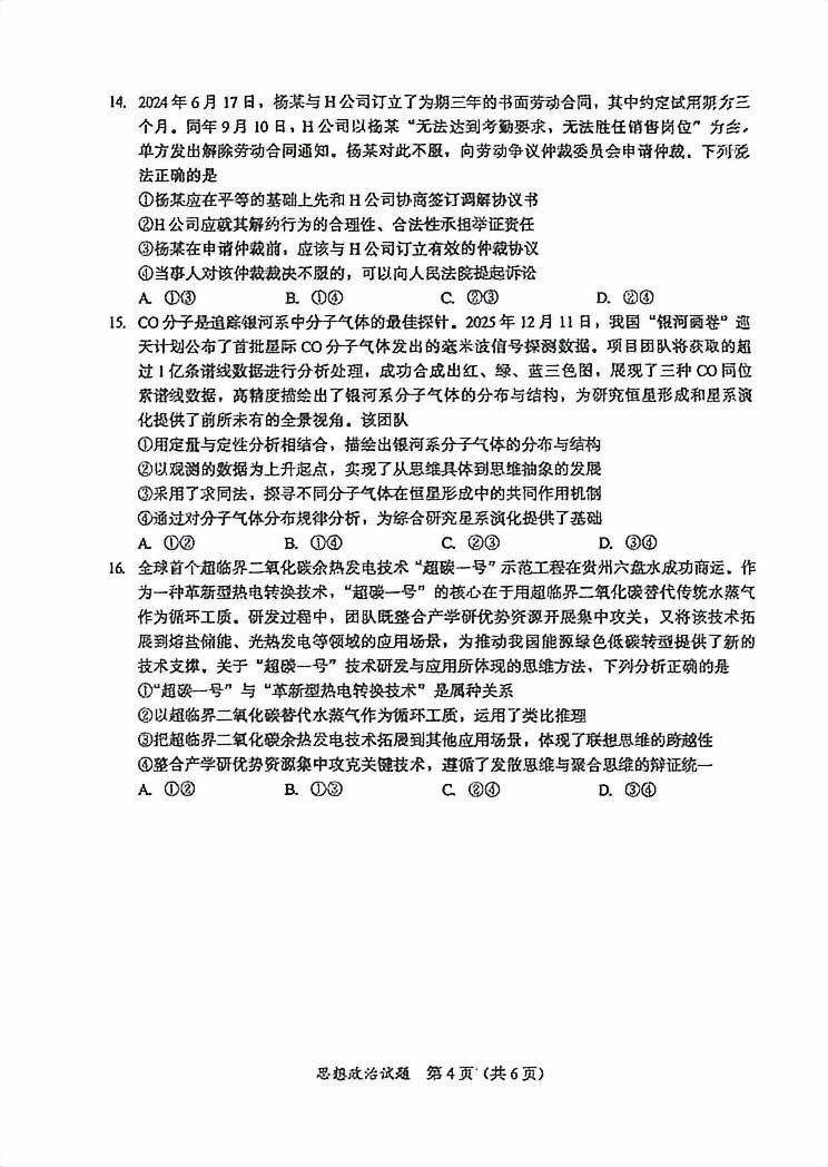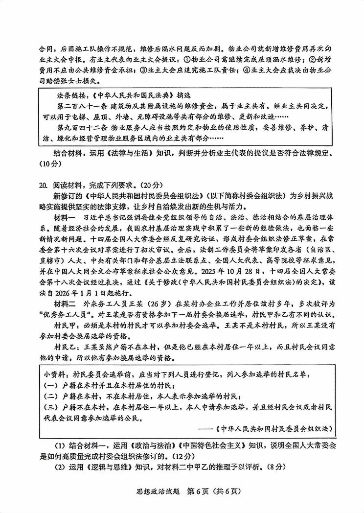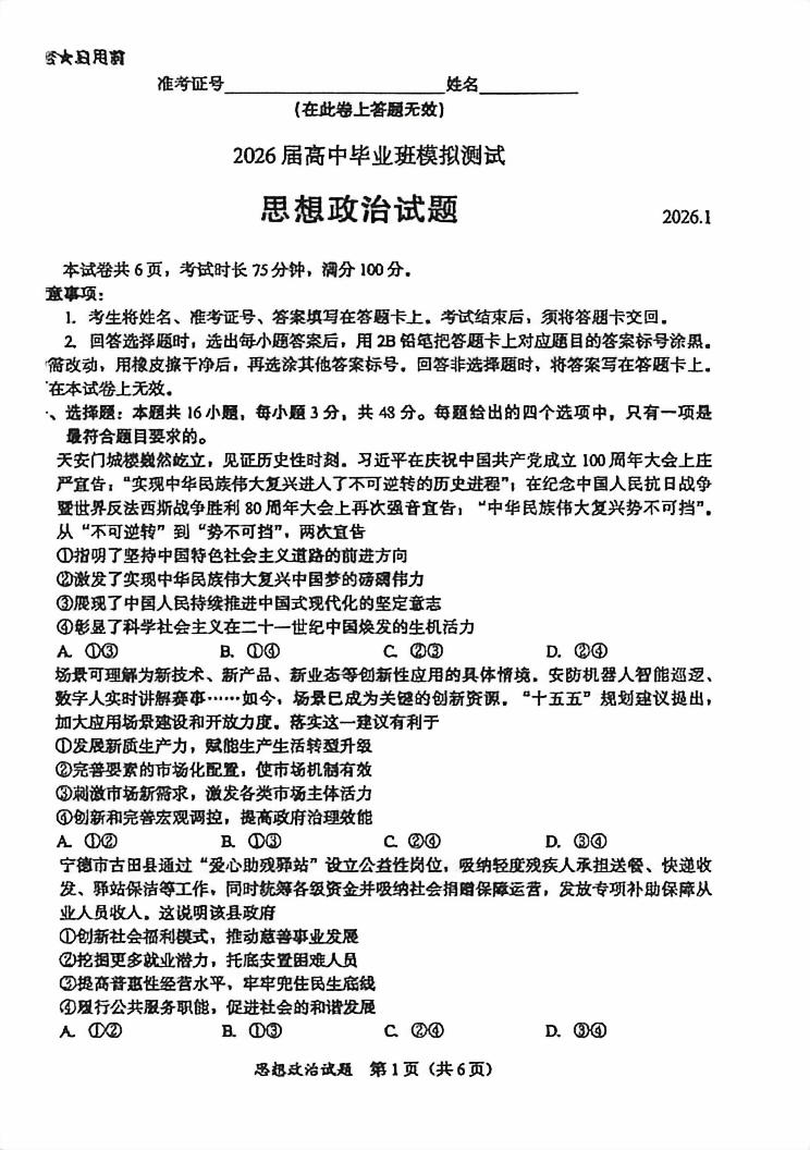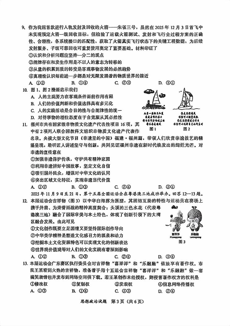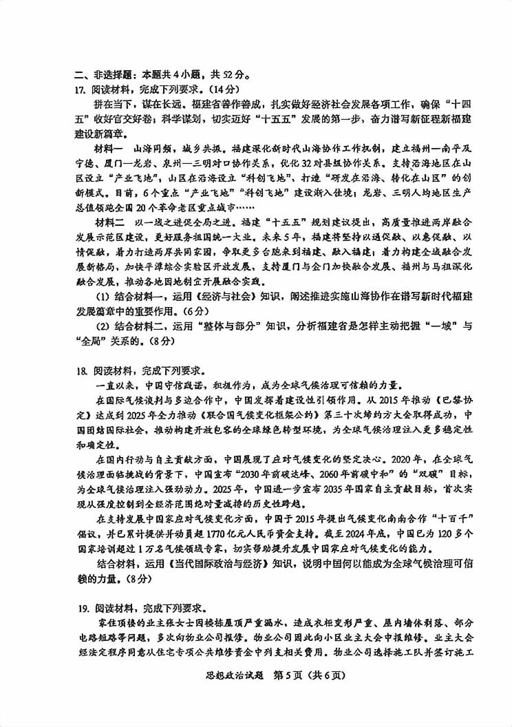 【已更新】2026福建高三1月六市联考试题及答案(政治)