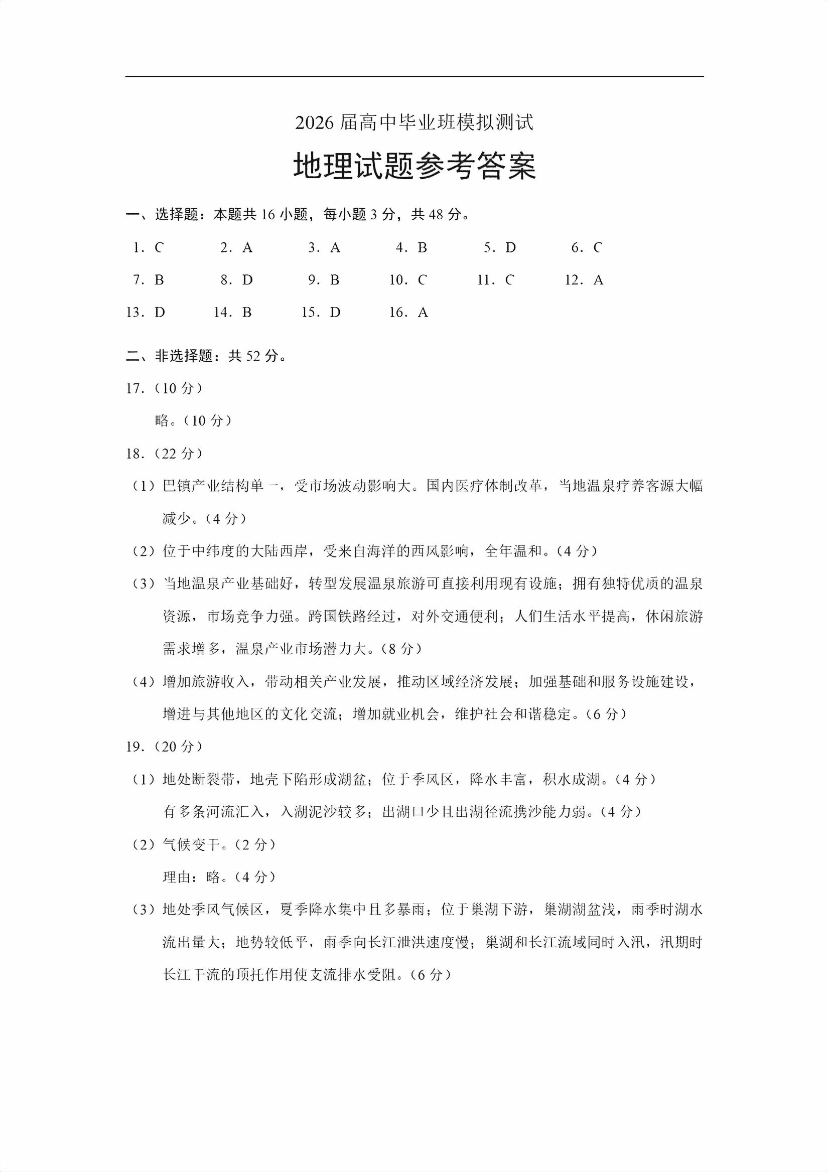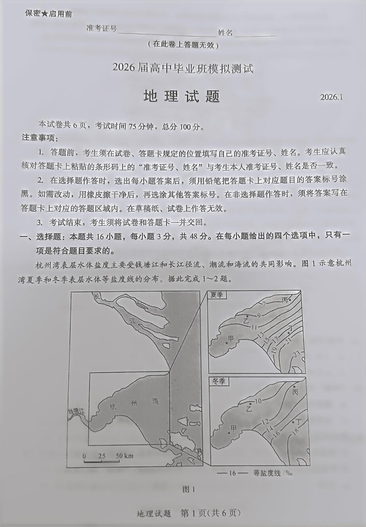 【已更新】2026福建高三1月六市联考试题及答案(地理)