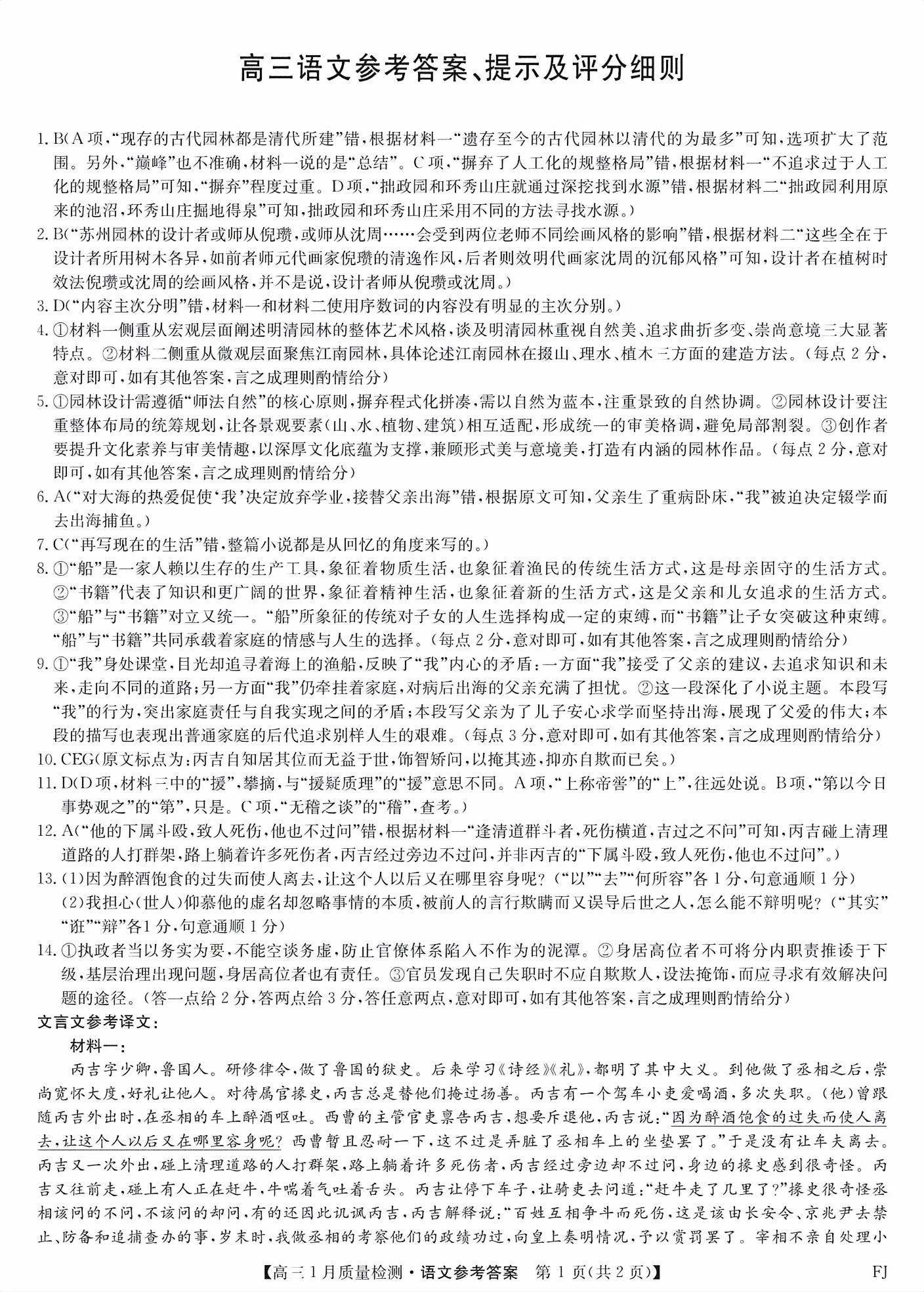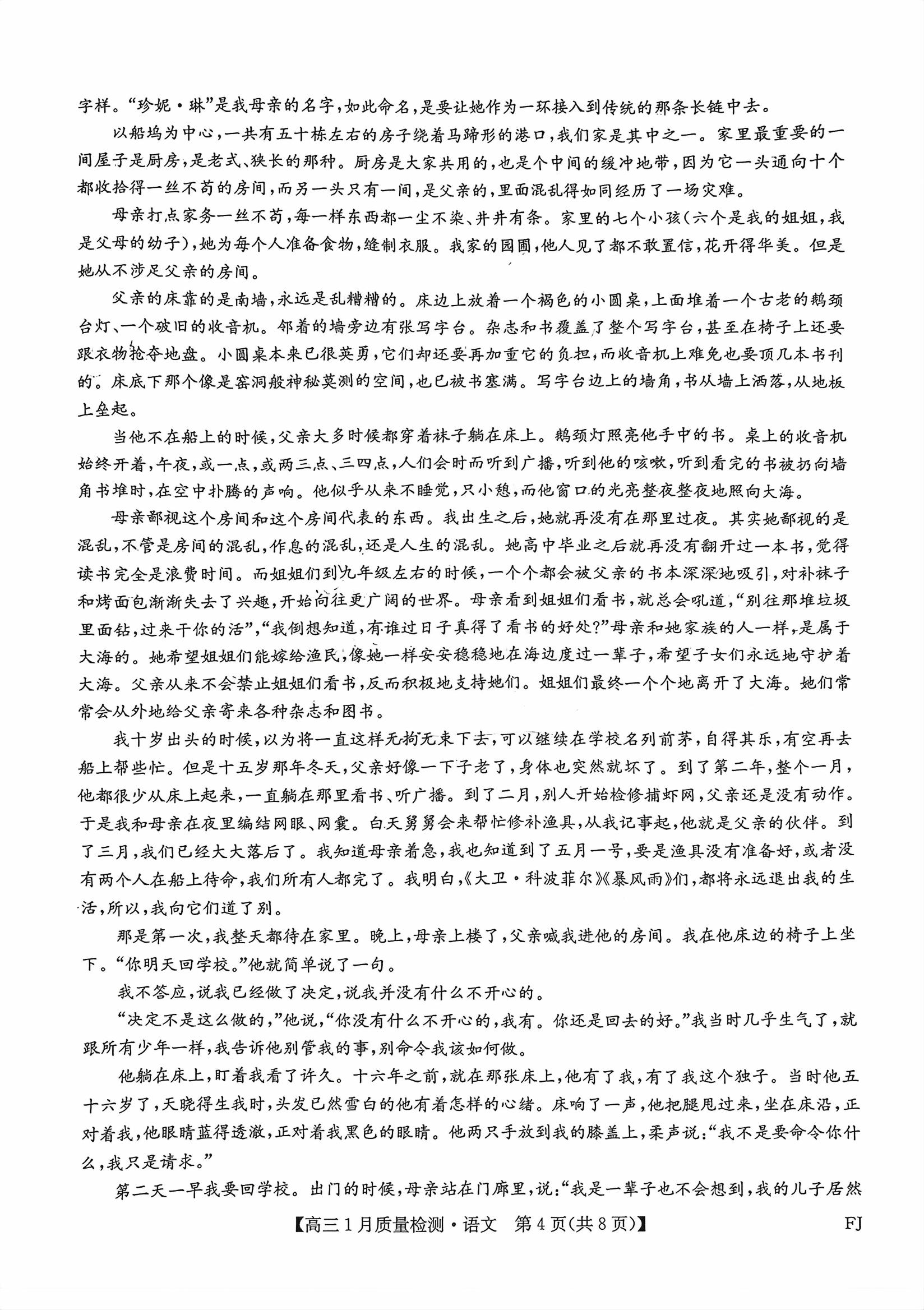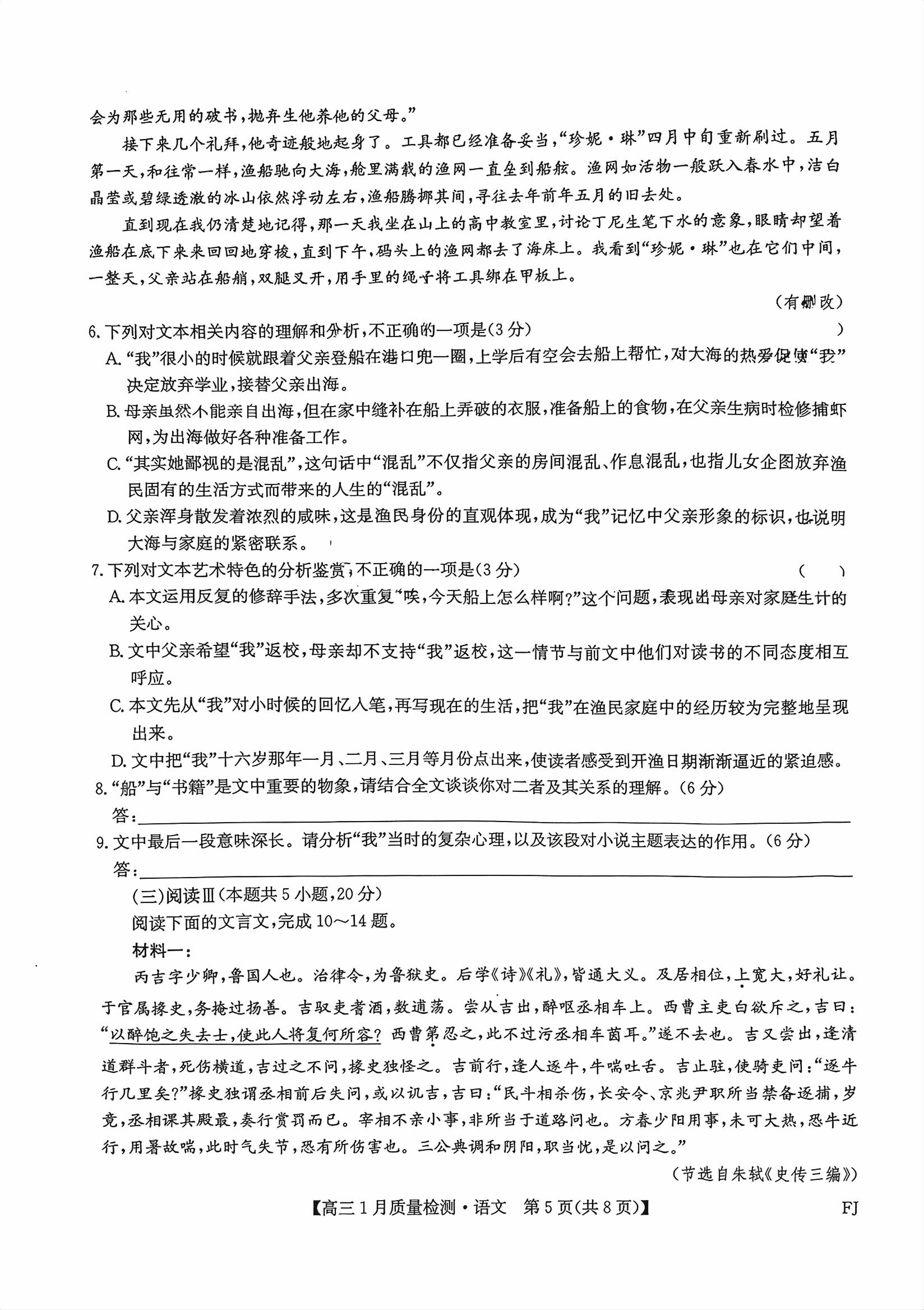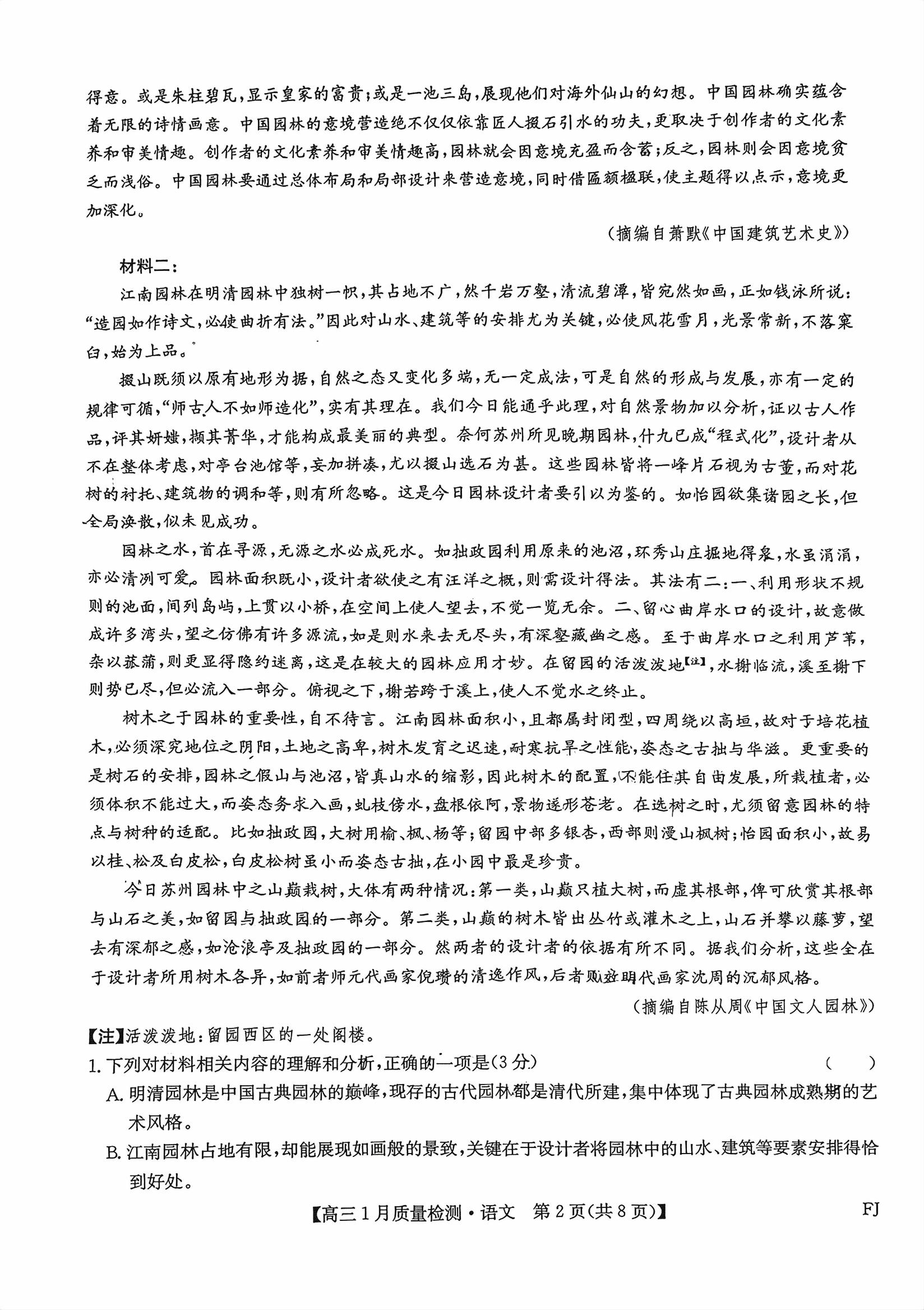【已更新】2026莆田1月市质检试题及答案(语文)