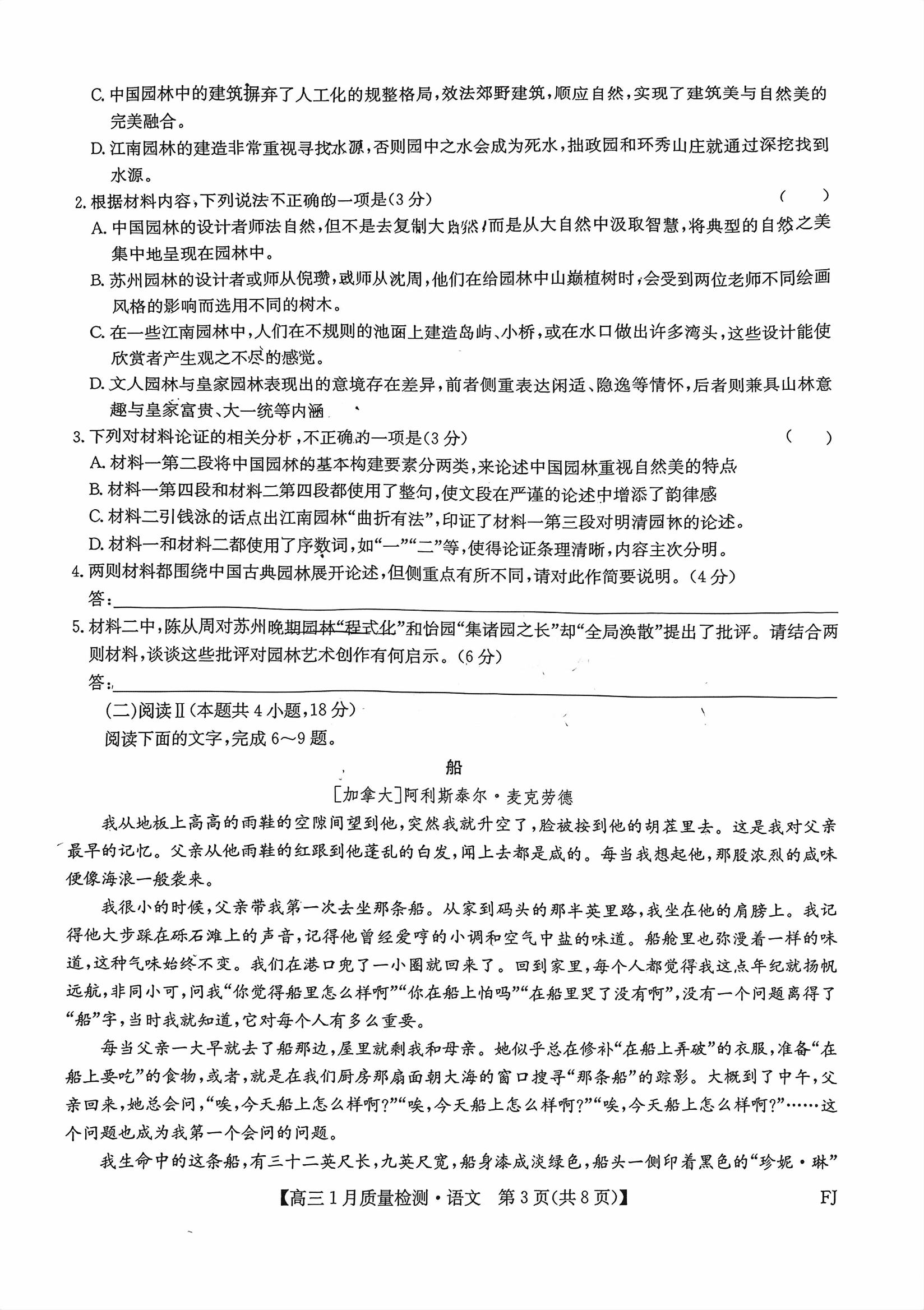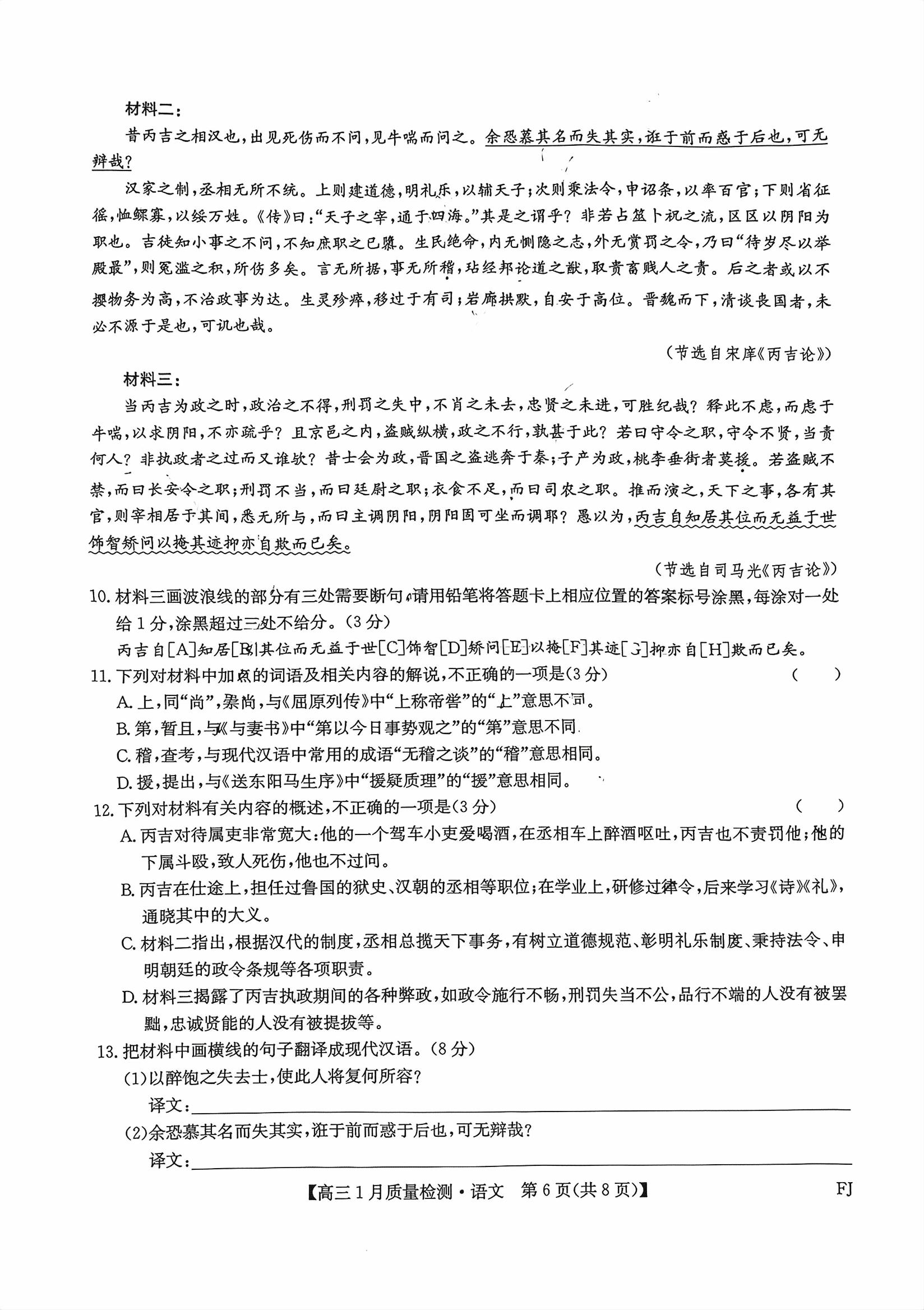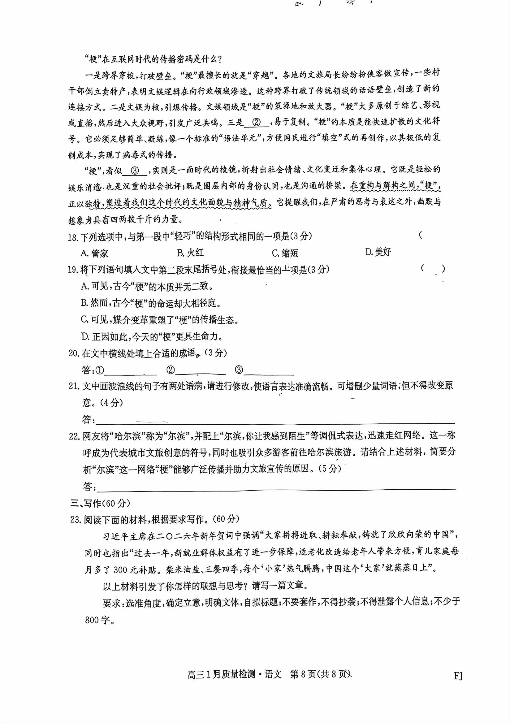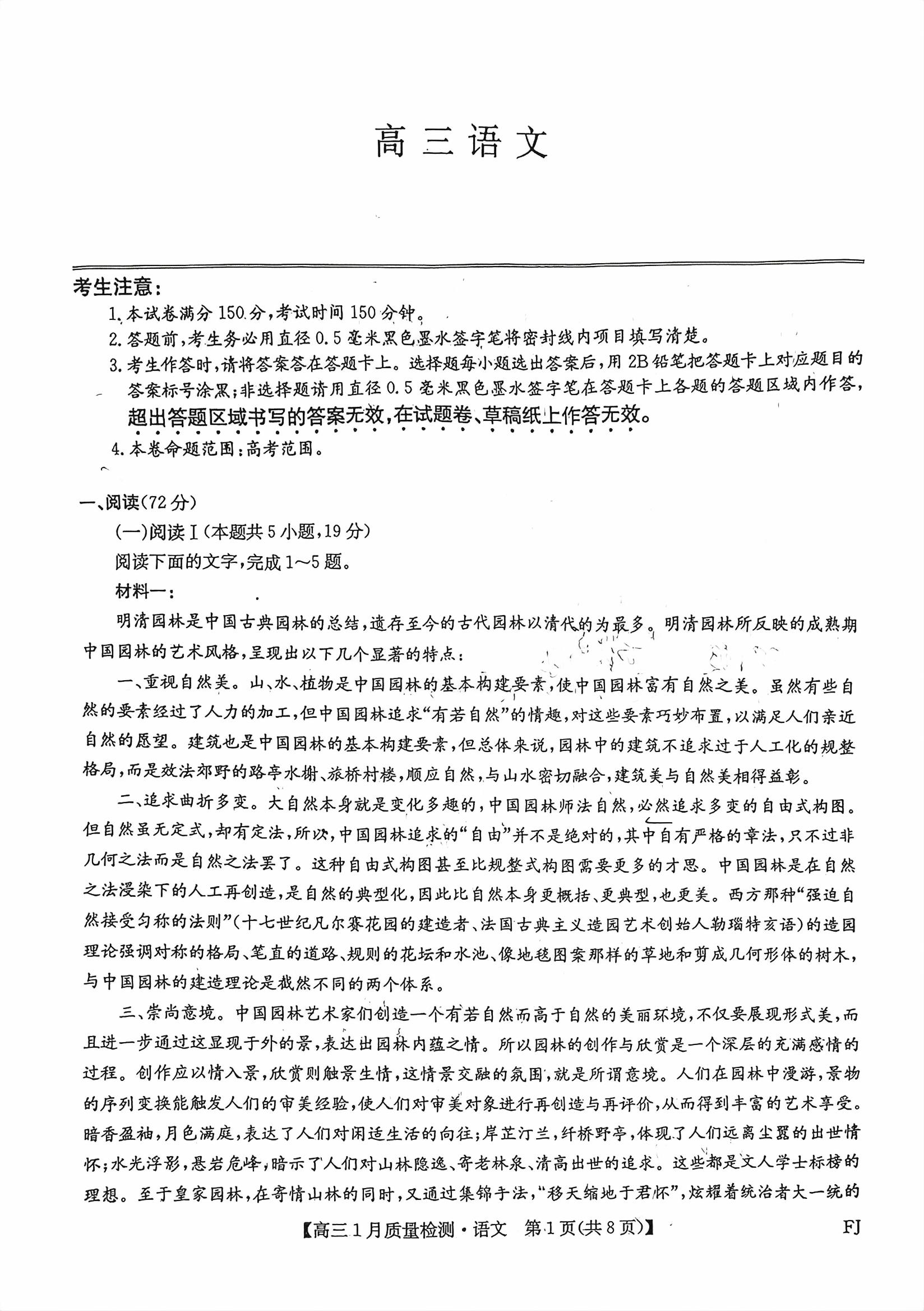 【已更新】2026莆田1月市质检试题及答案(语文)