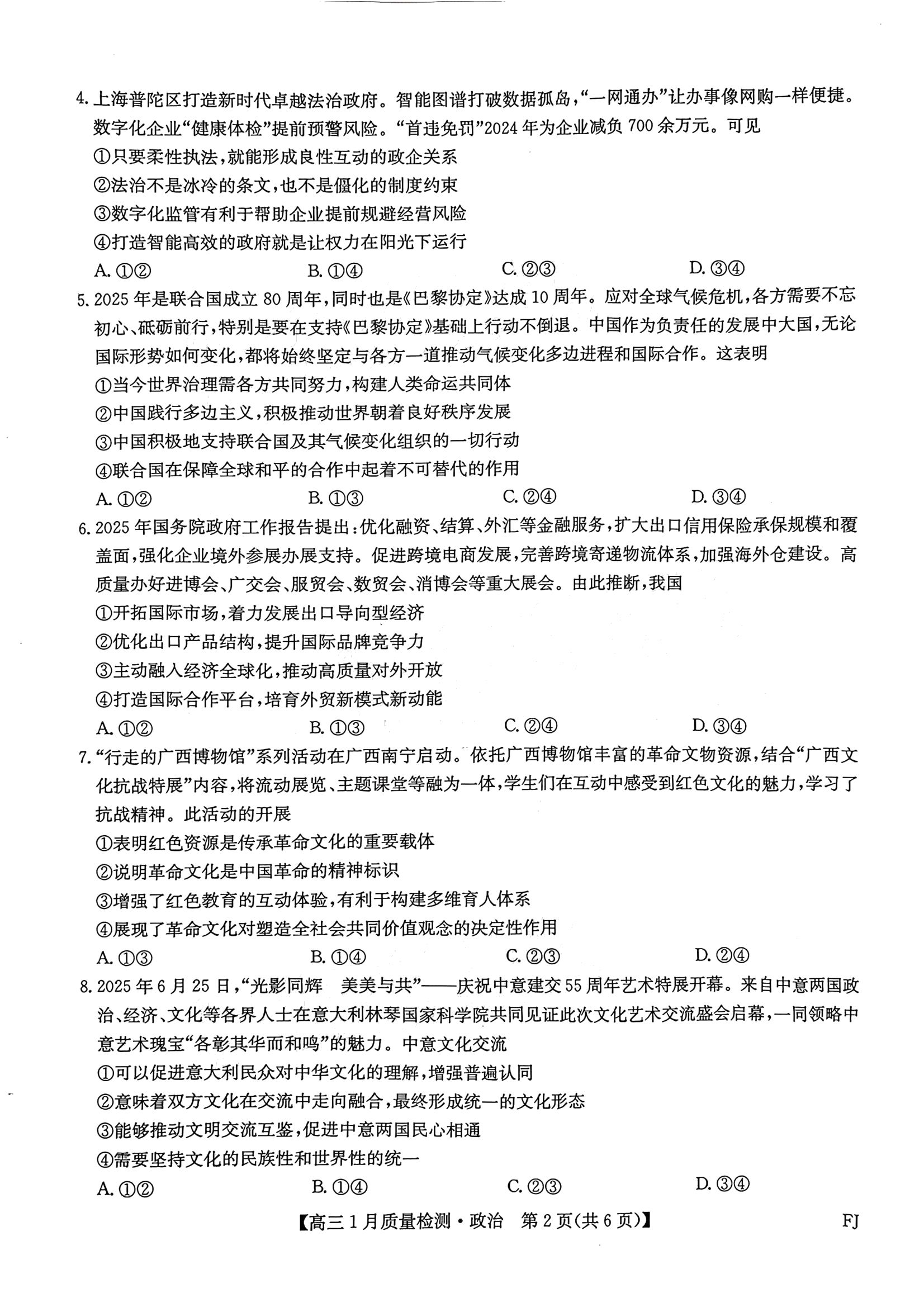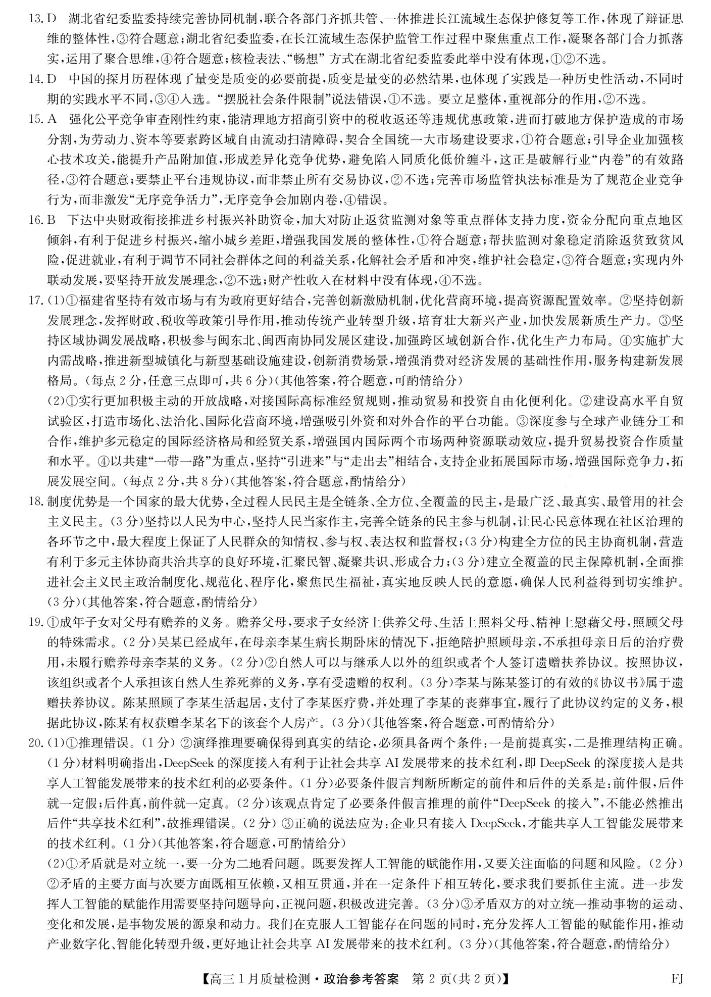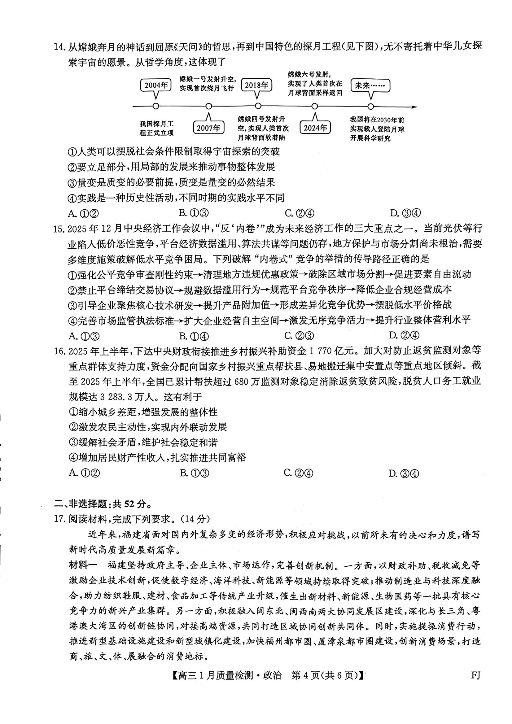 【已更新】2026莆田1月市质检试题及答案(政治)