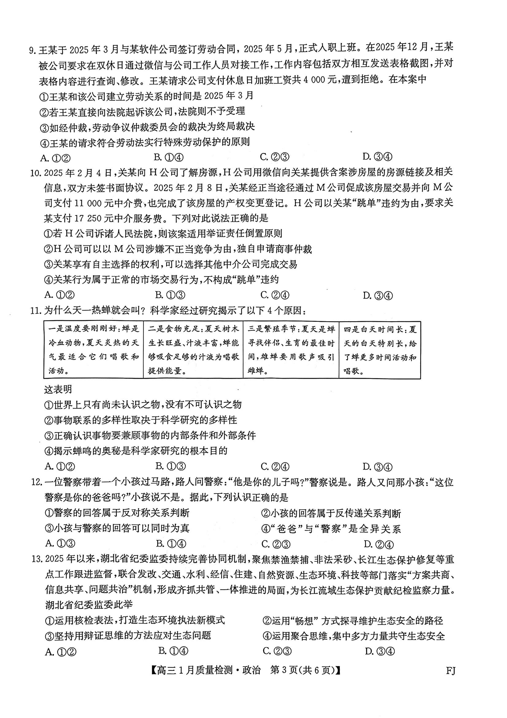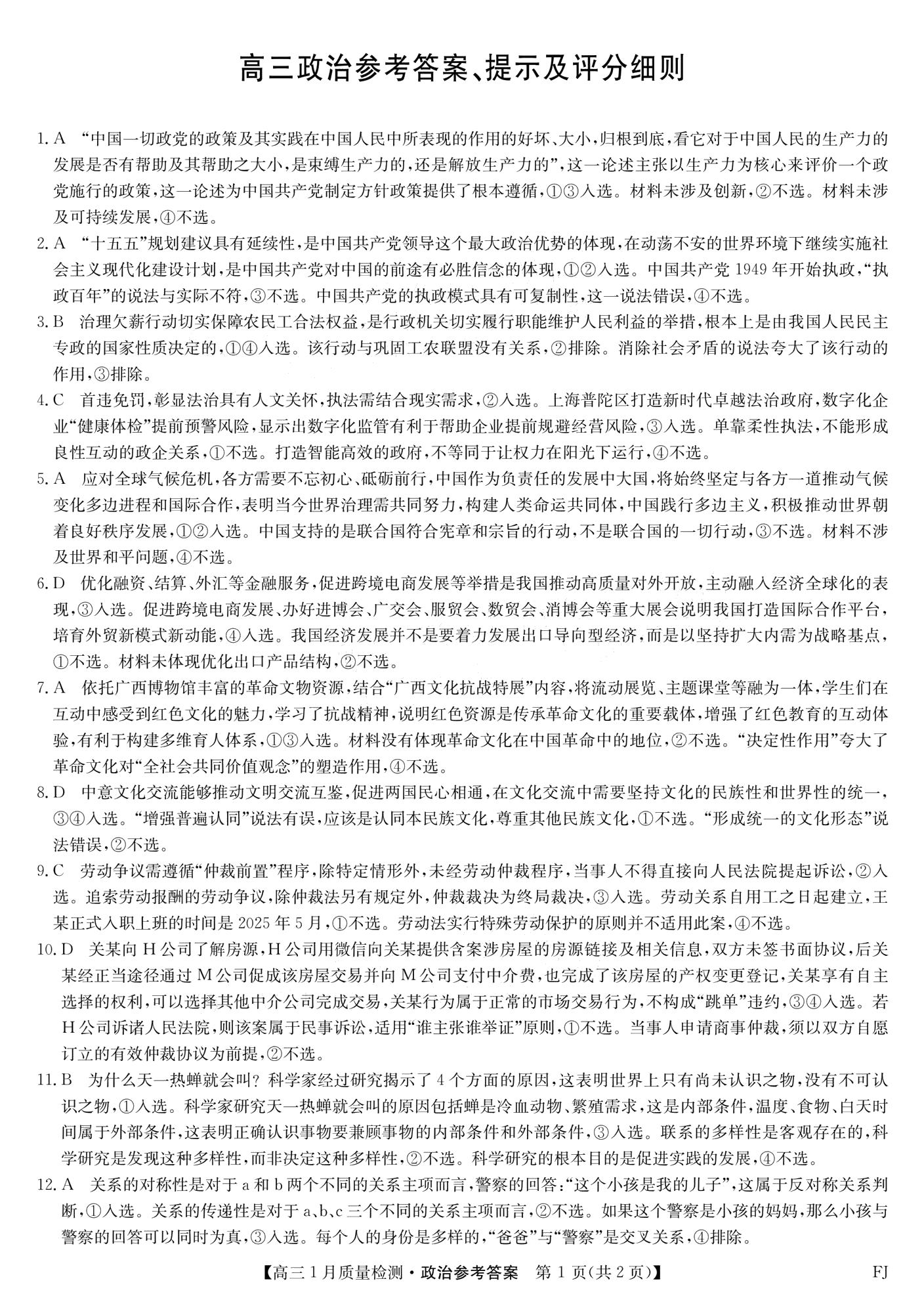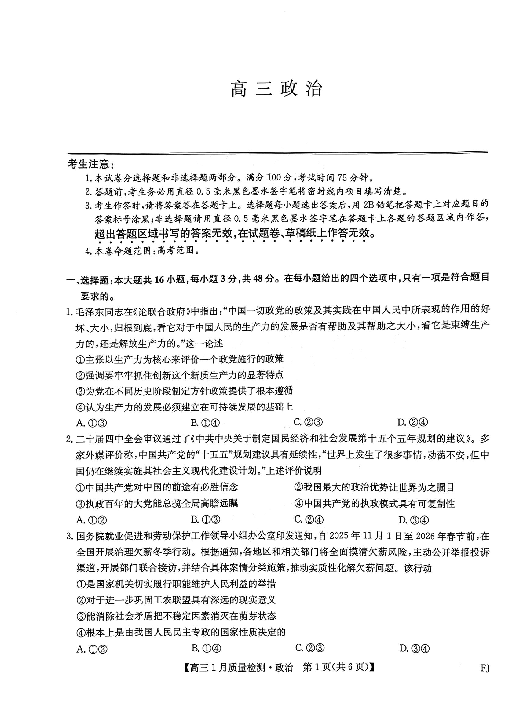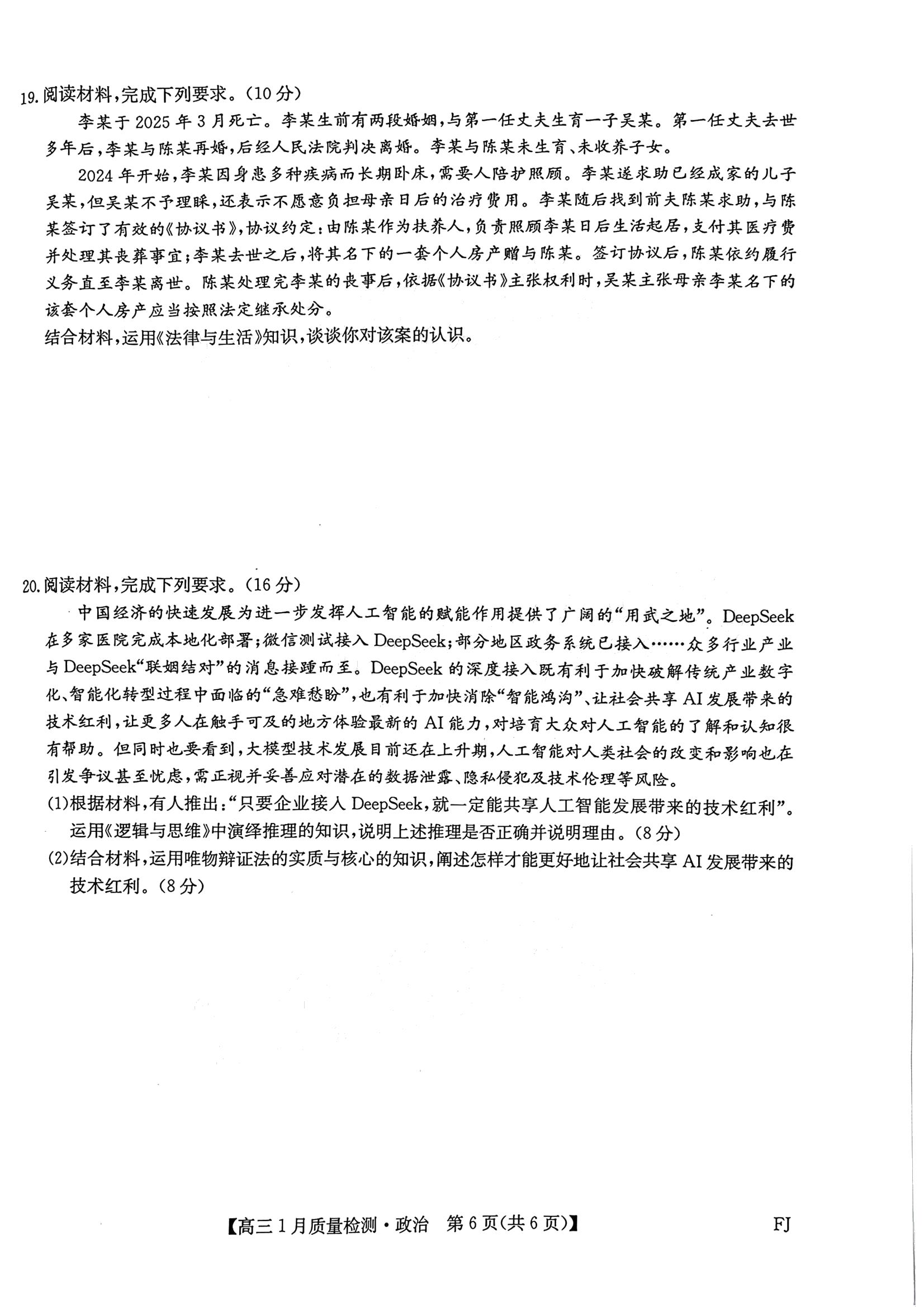 【已更新】2026莆田1月市质检试题及答案(政治)