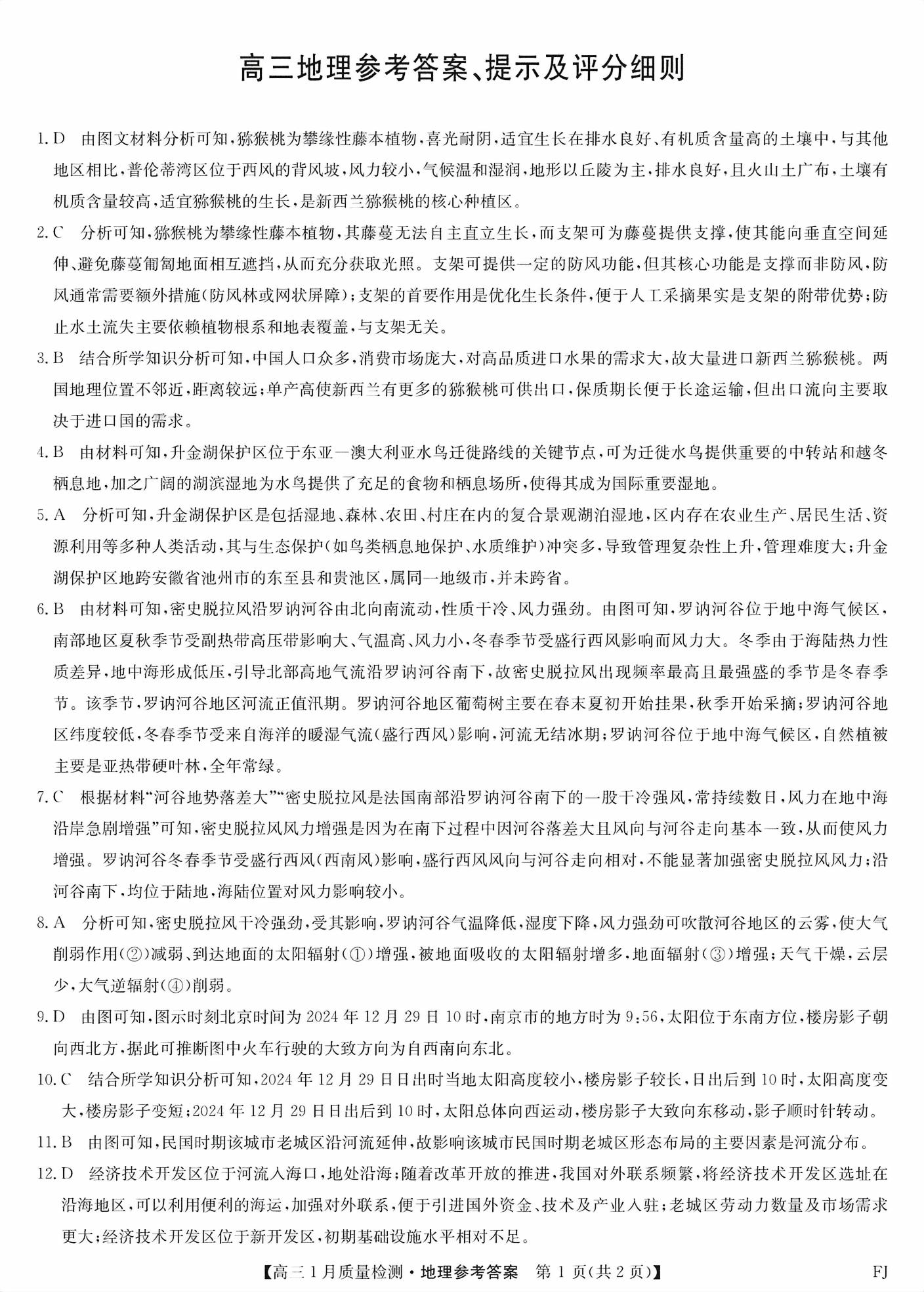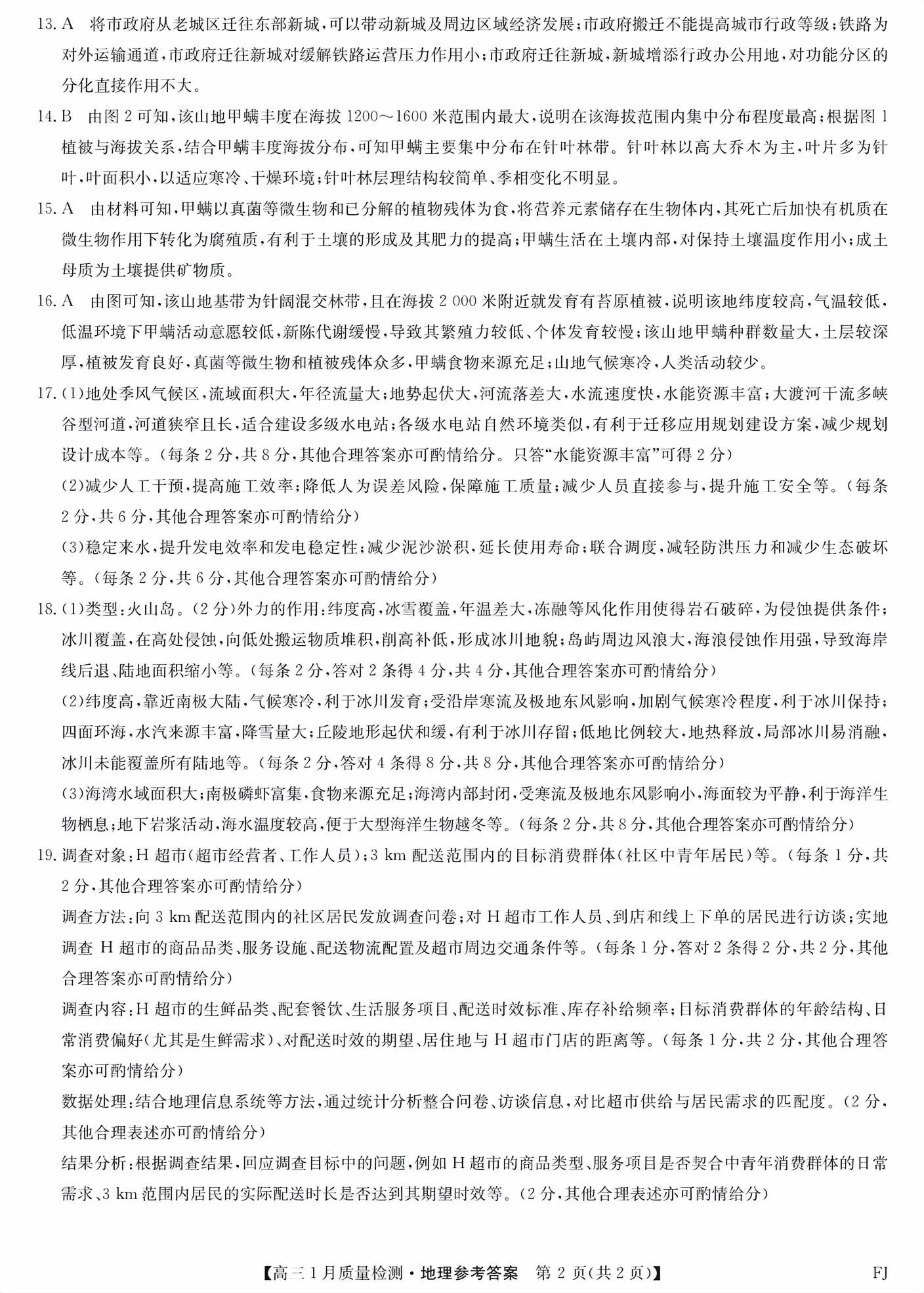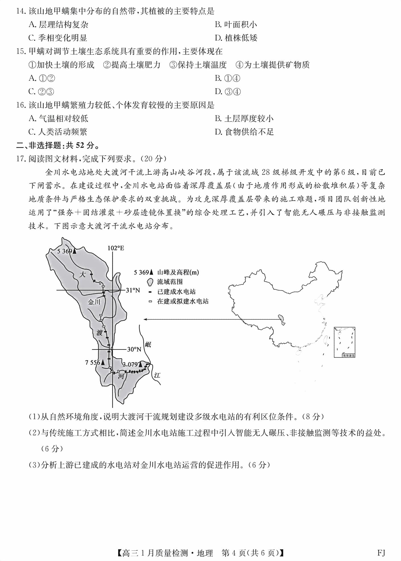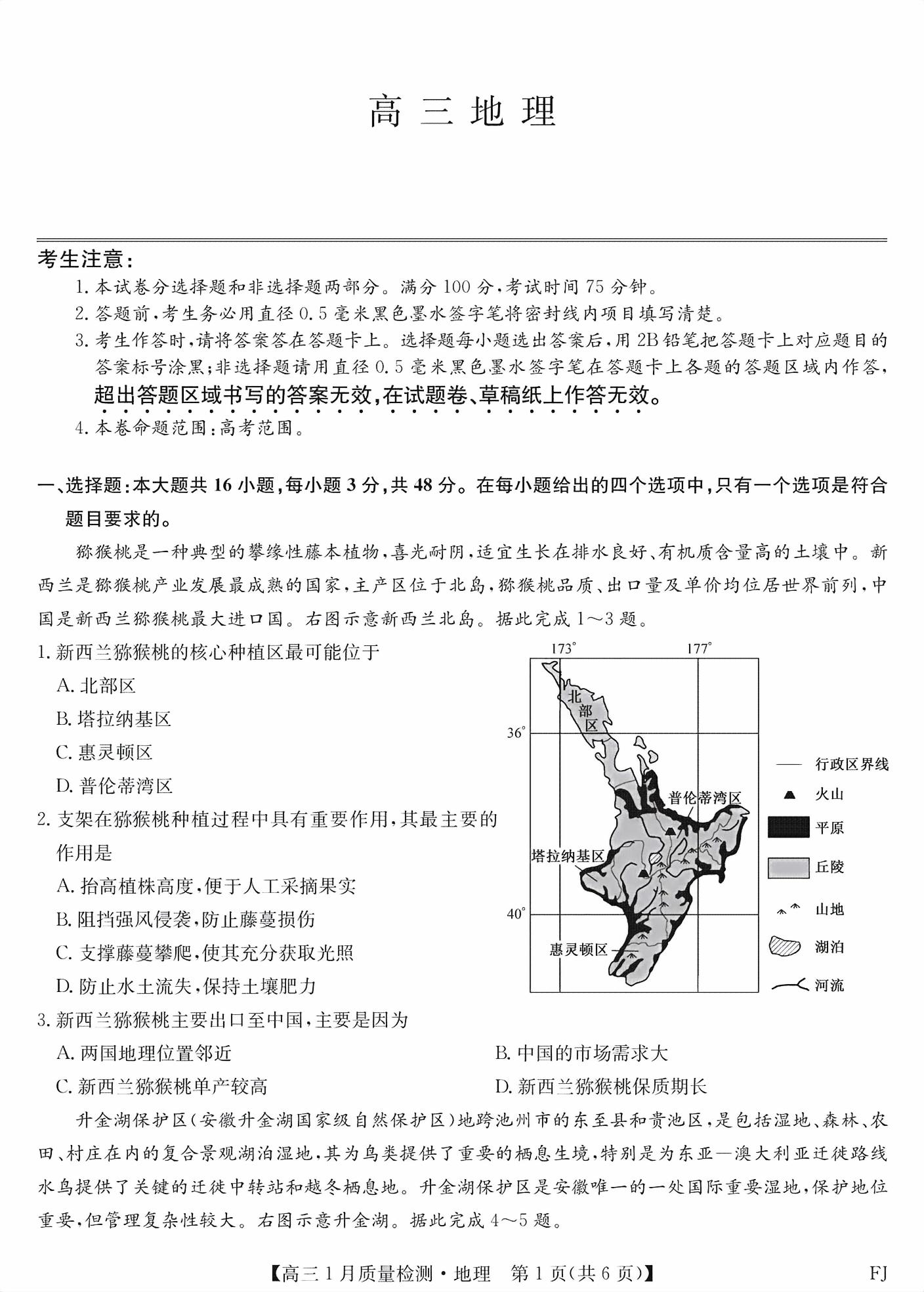【已更新】2026莆田1月市质检试题及答案(地理)