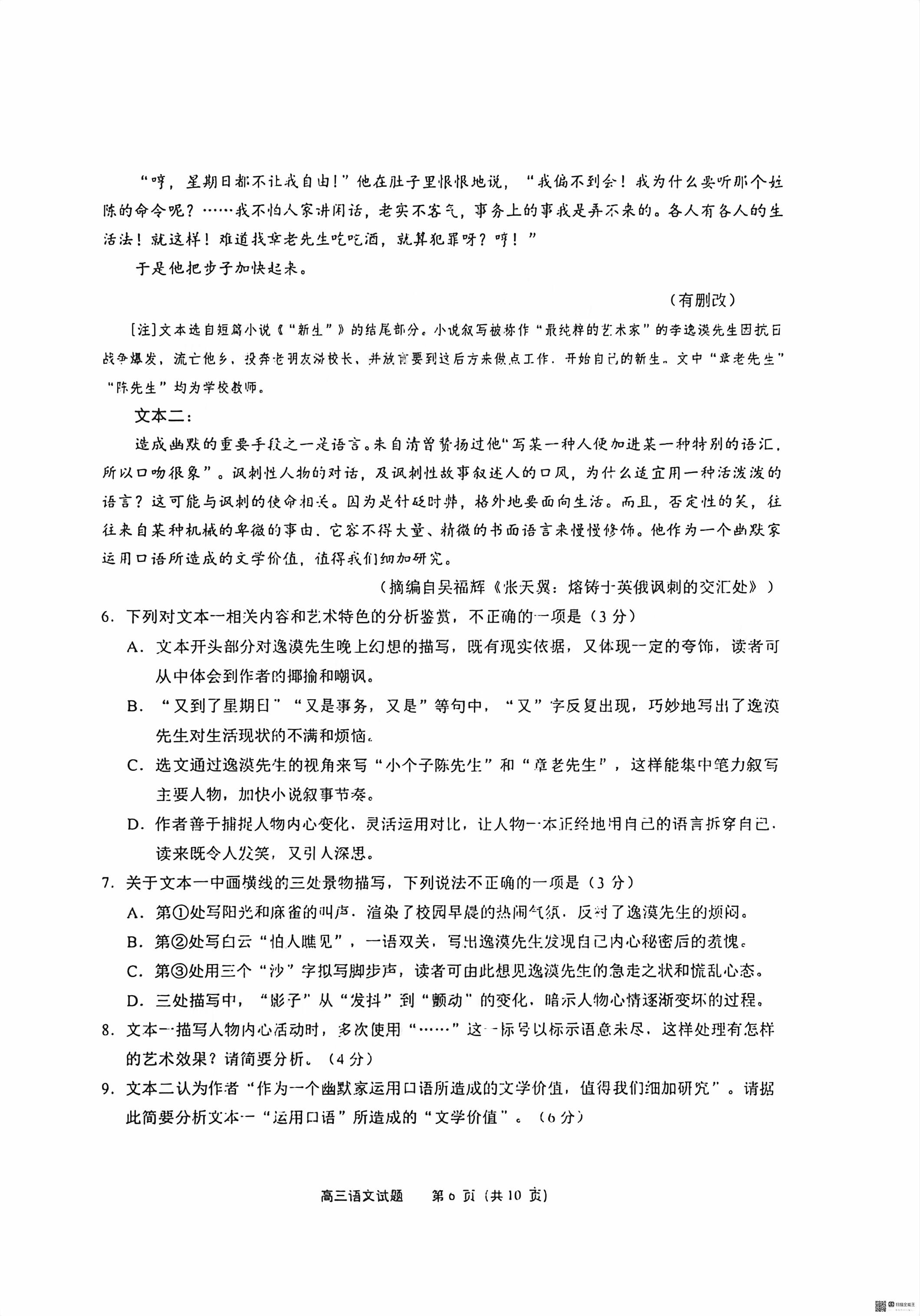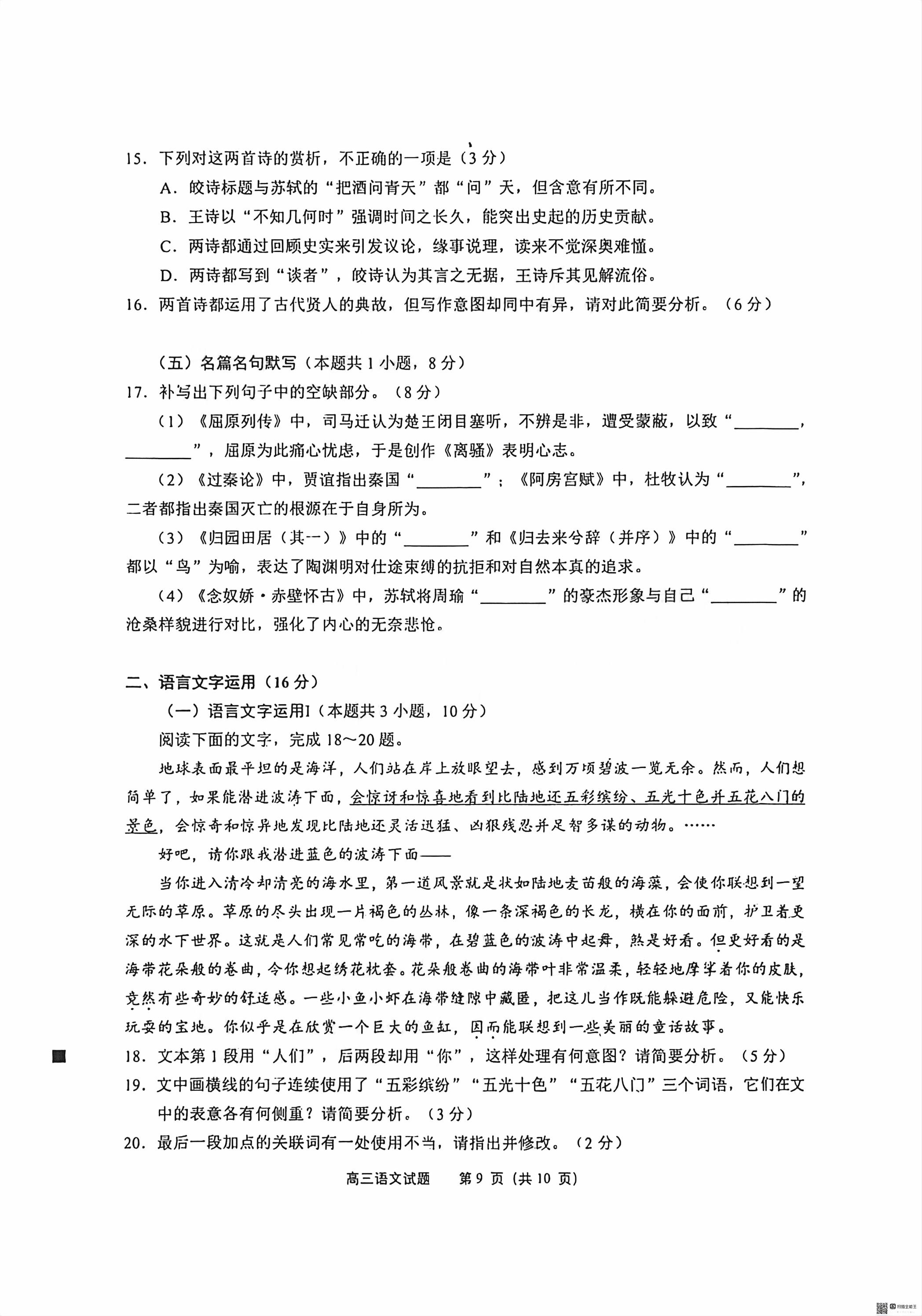 【已更新】2026泉州二检试题及答案(语文)