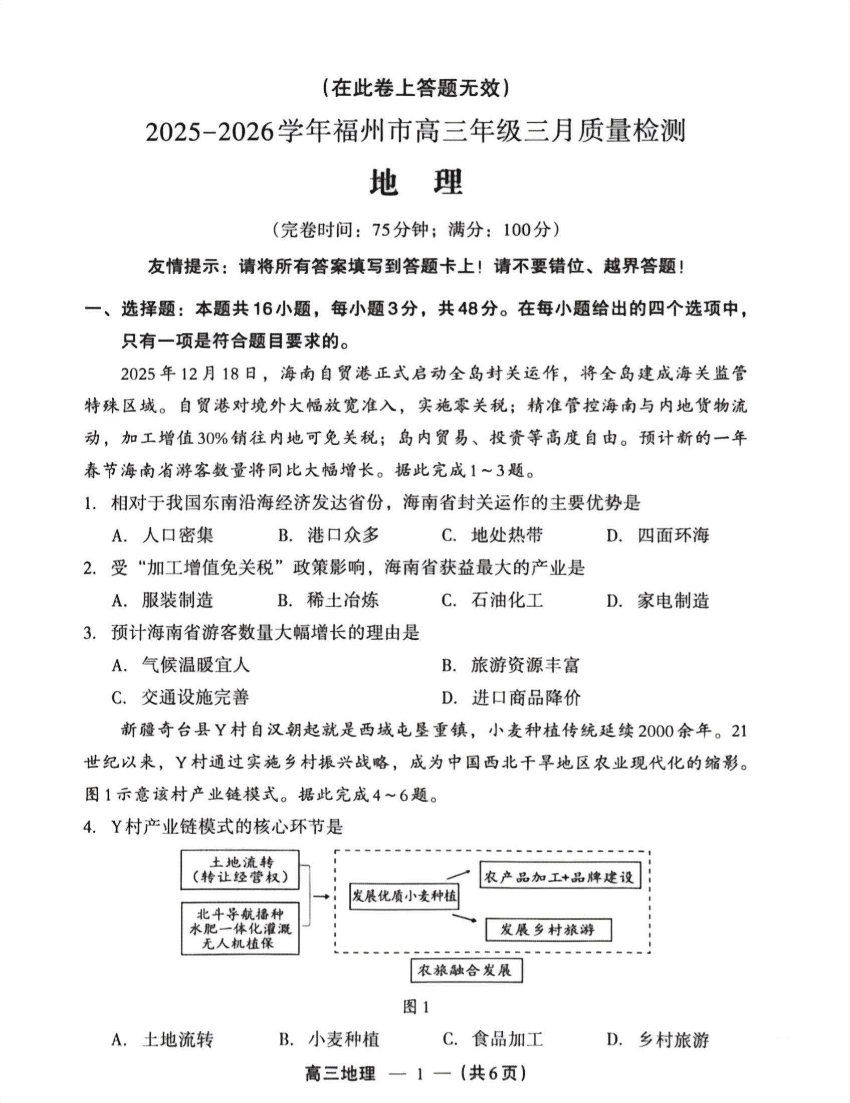 【已更新】2026福州二检试题及答案(地理)