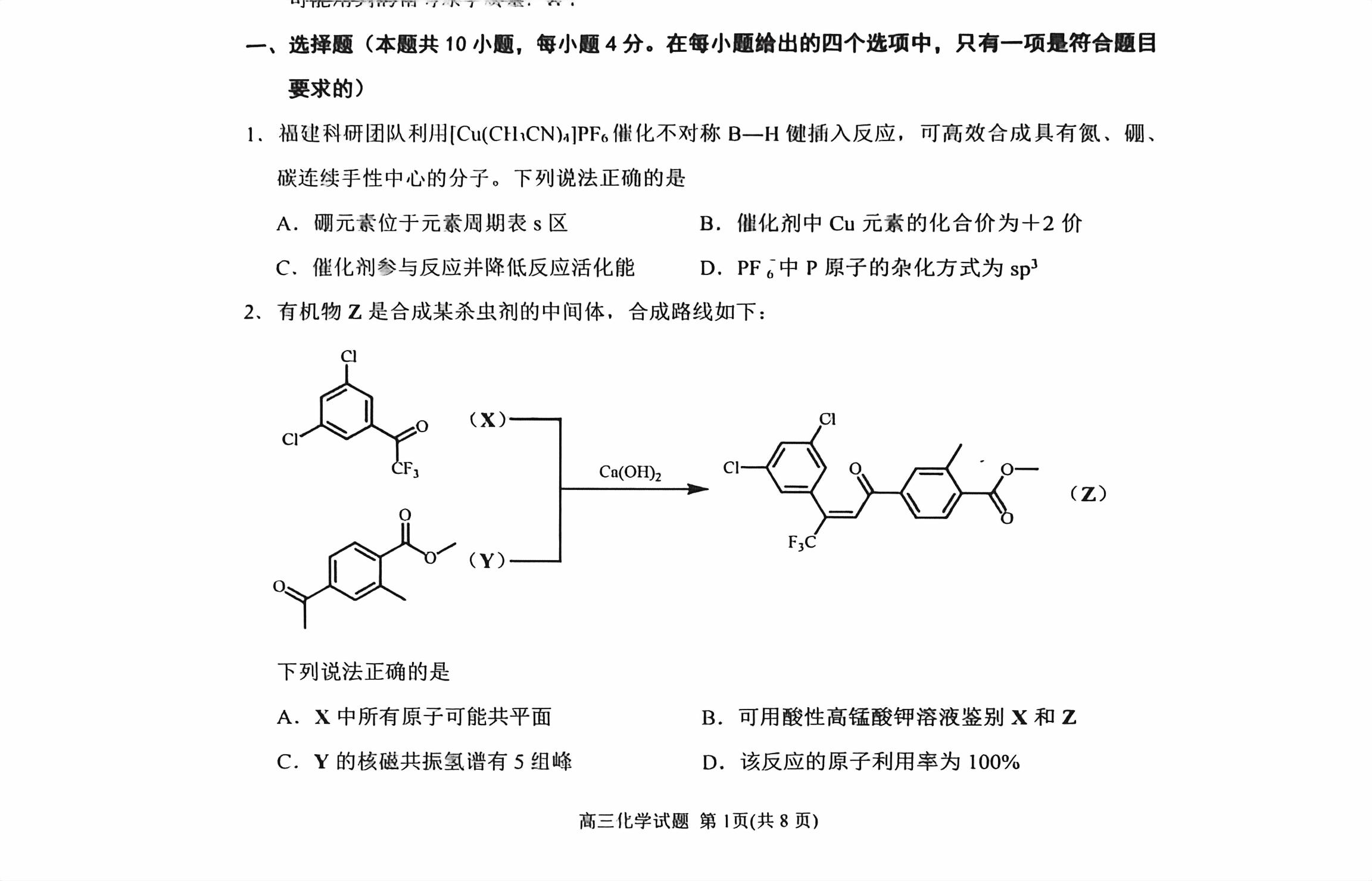 【已更新】2026年泉州三检试题及答案(化学)
