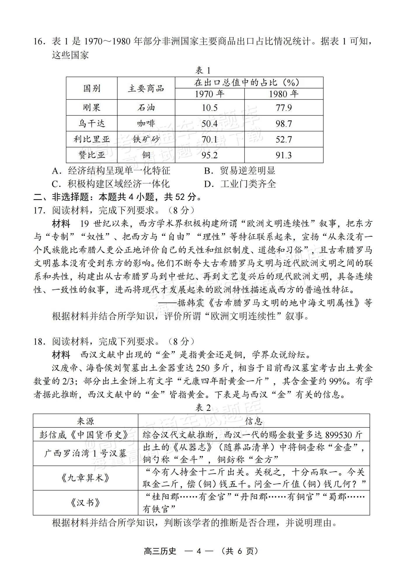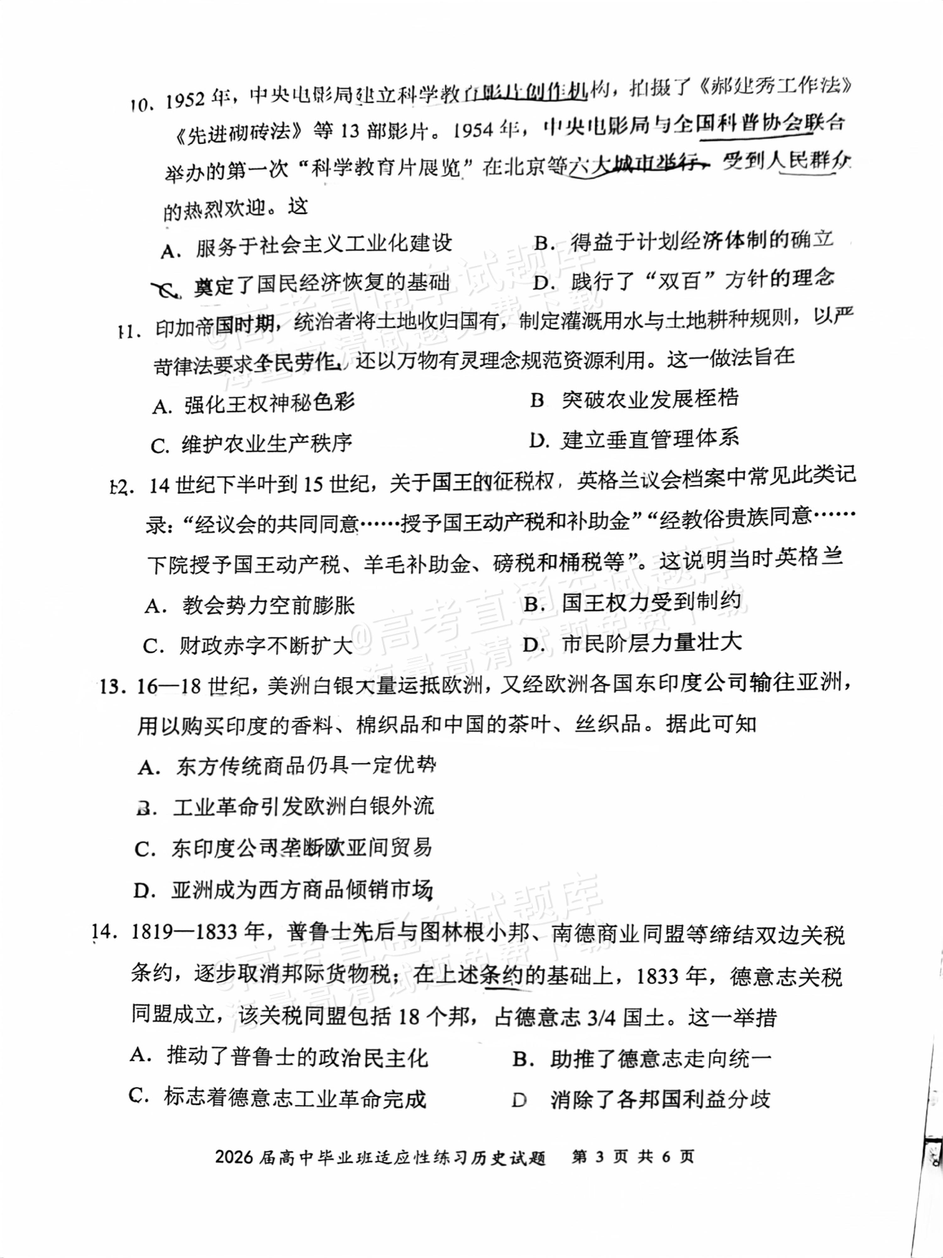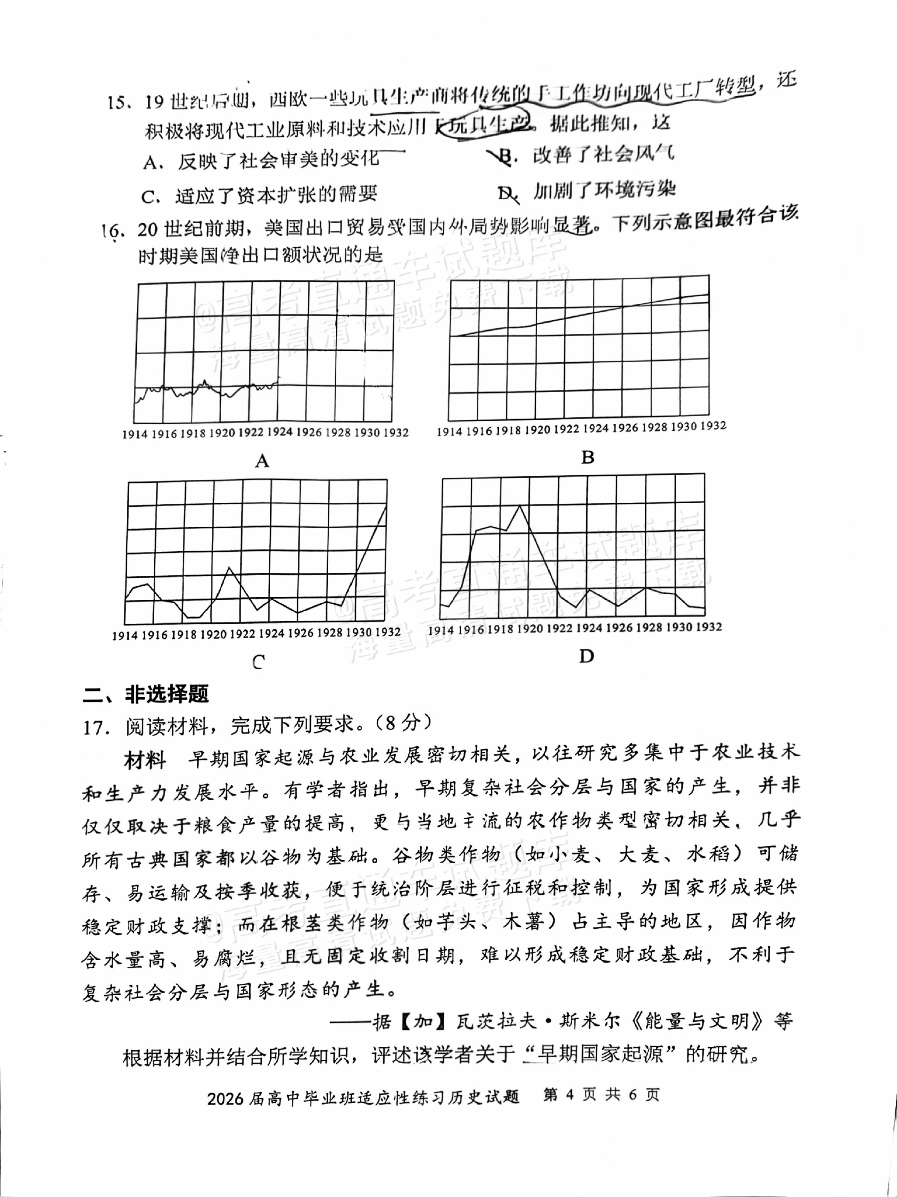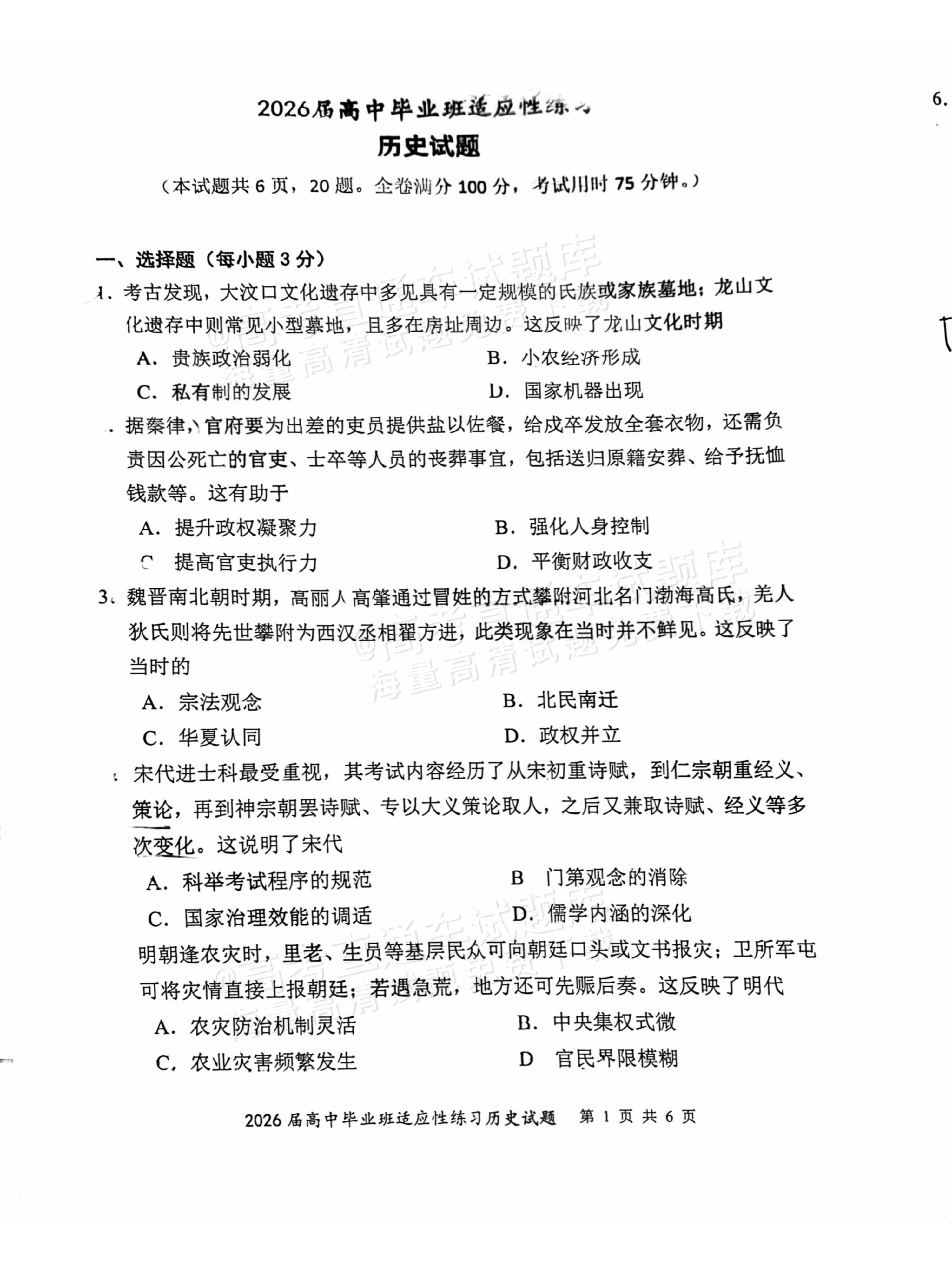 【已更新】2026年福建高三4月省质检试题及答案(历史)