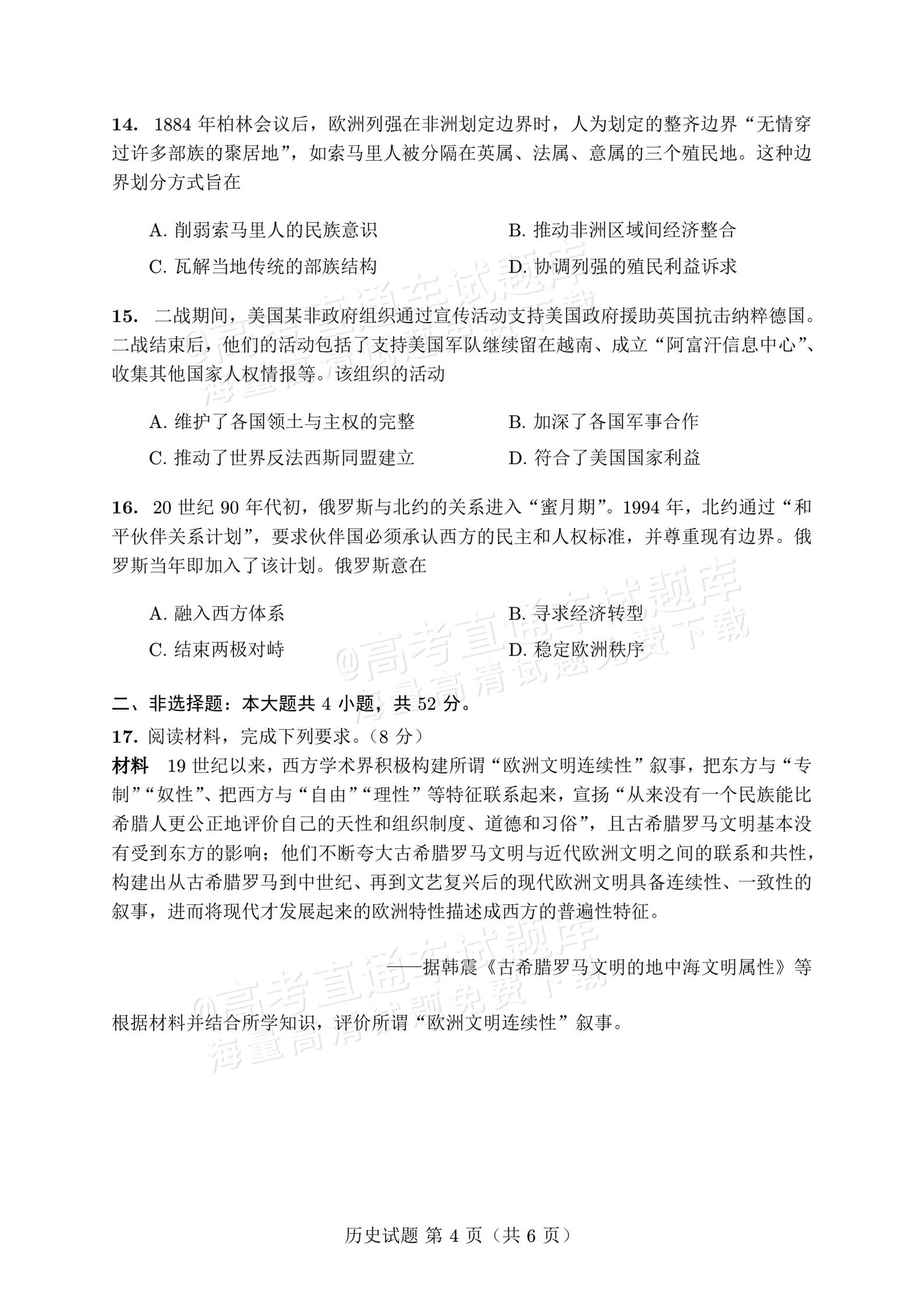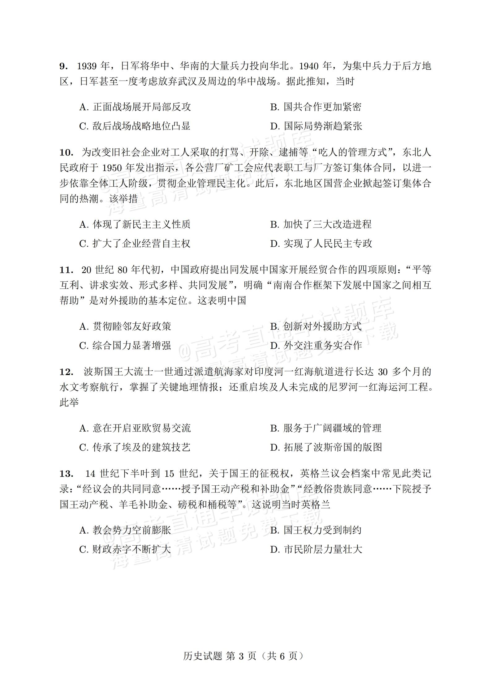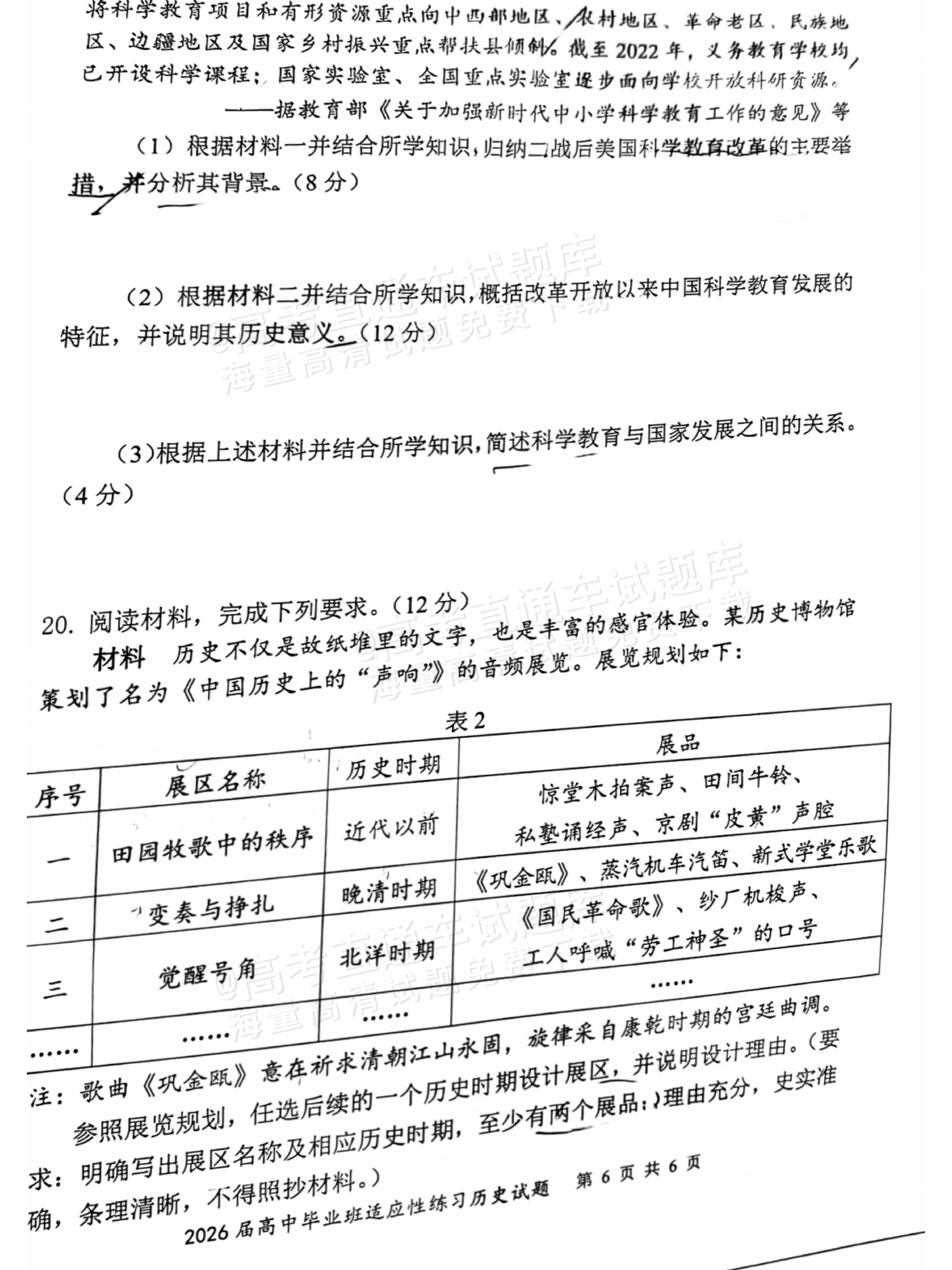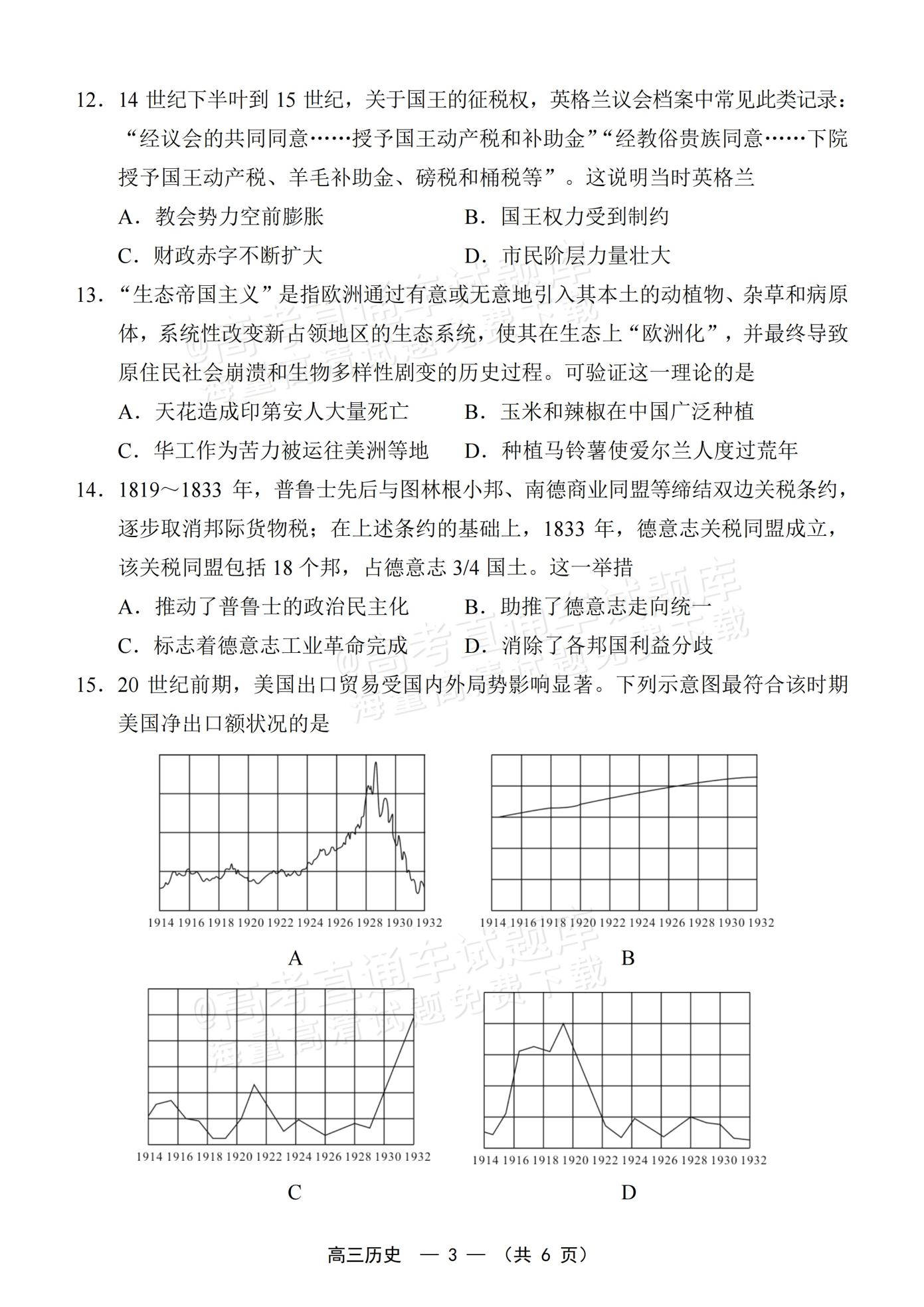 【已更新】2026年福建高三4月省质检试题及答案(历史)