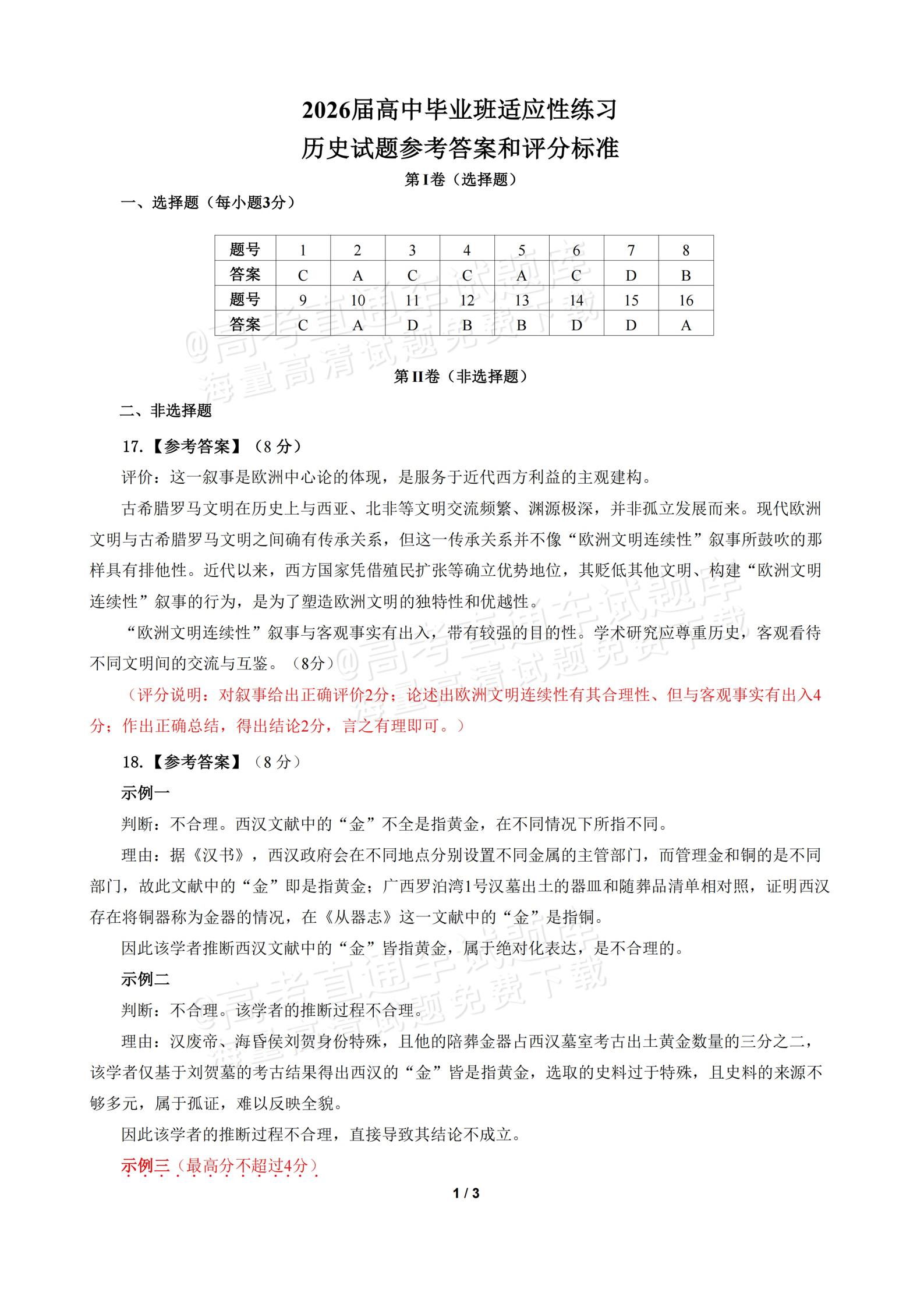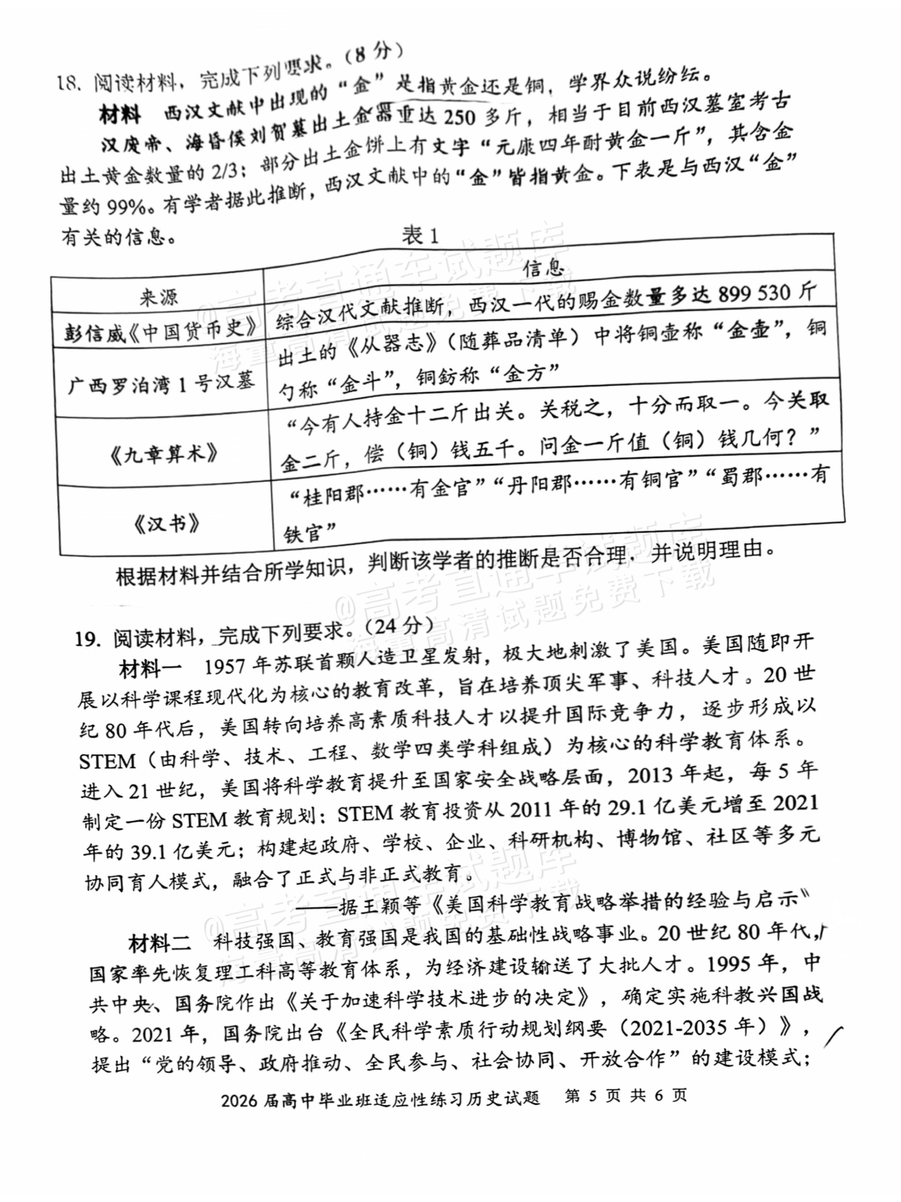 类型:质检 科目:历史 地市: 全省