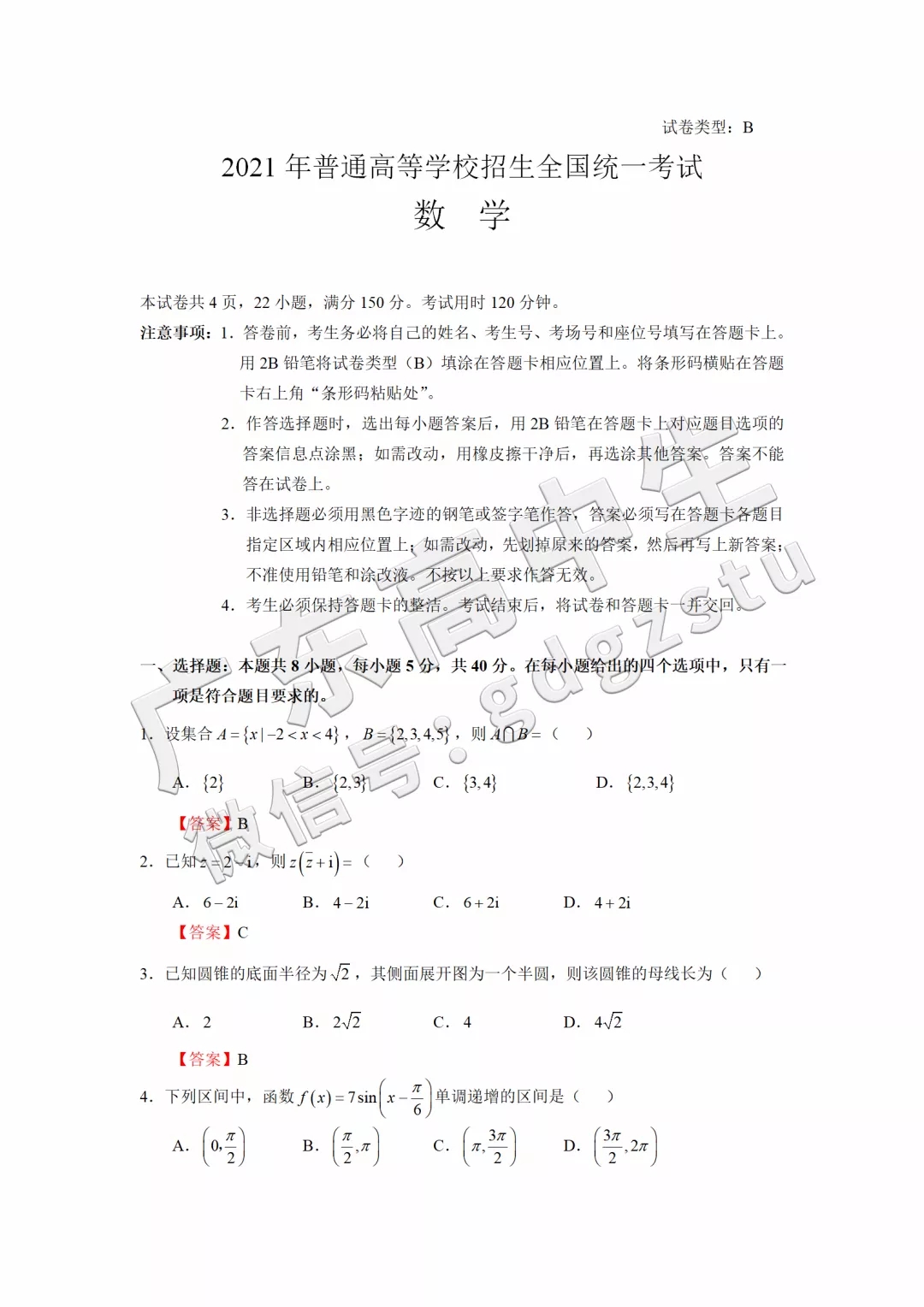 高考试卷